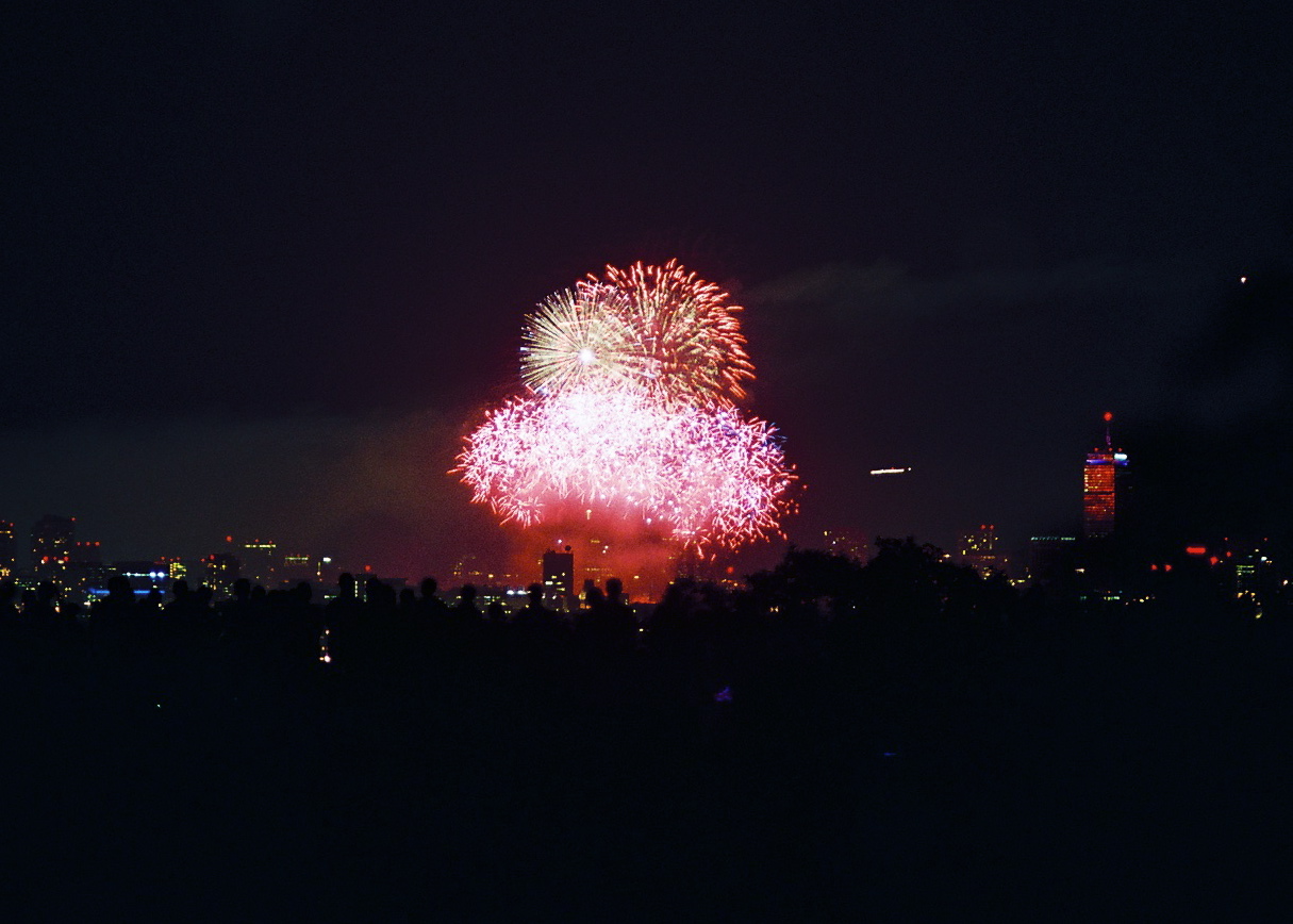Boston silhouetted against an early morning sky as seen from Robbins Farm Park. August 2, 2011.