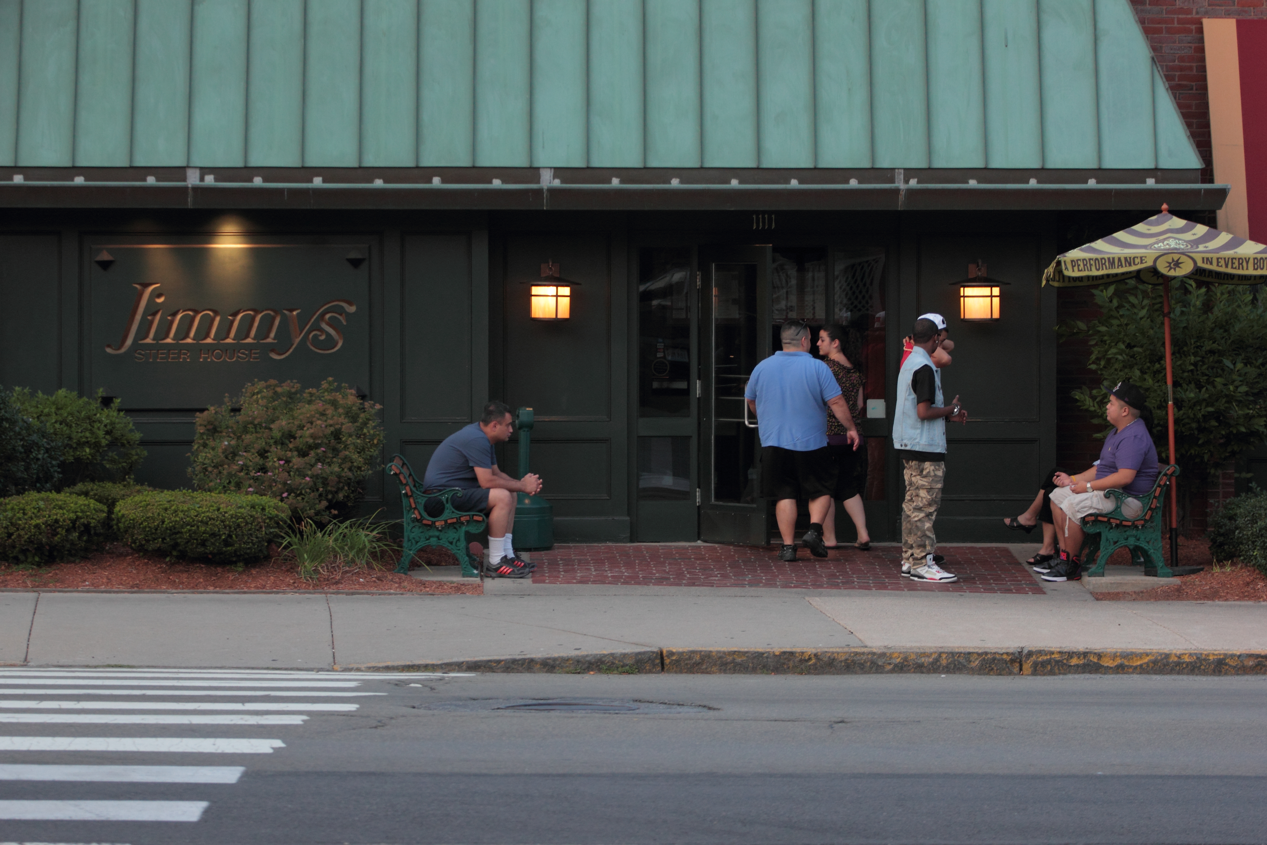A point on Massachusetts Avenue heading westbound that takes a dogleg left. In the past, drivers have found themselves making inadvertent stops at Brite Whites Laundromat and The Great Wok Chinese restaurant. August 31, 2012.