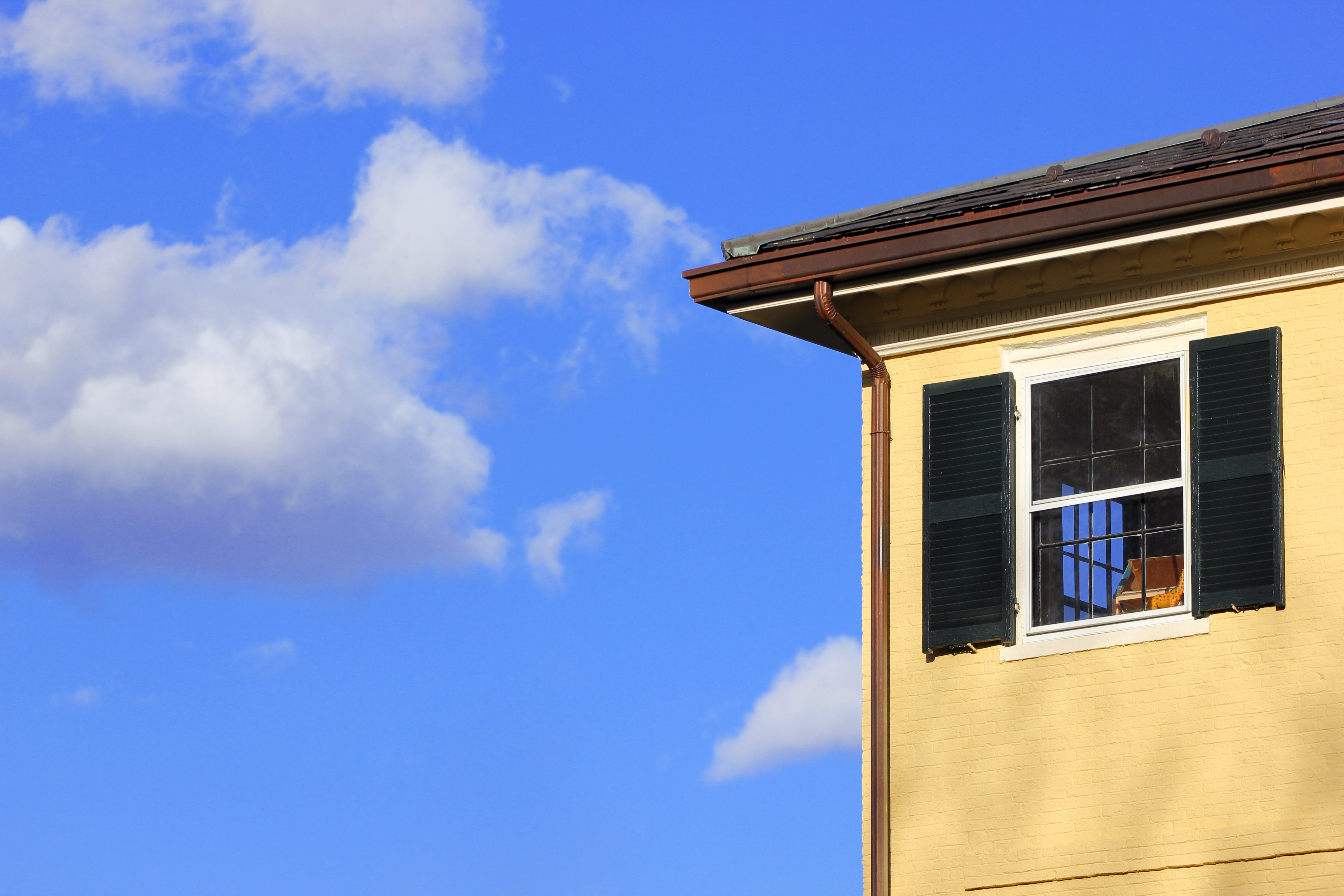 The shadow of the American flag on the front of the Jason Russell house, where, on April 19, 1775, the bloodiest battle of the first day of the American Revolution took place. April 17, 2016.