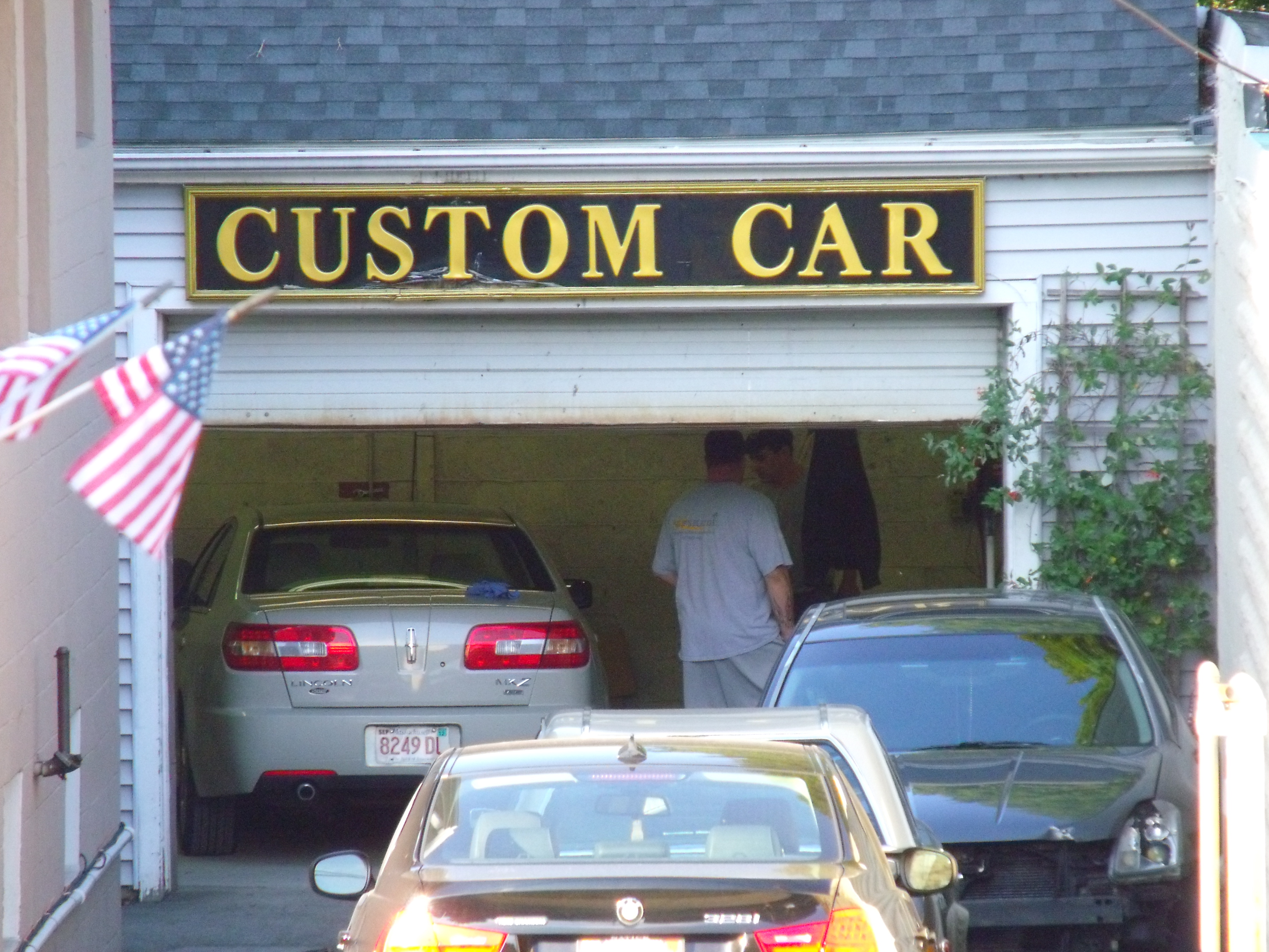 Noble gases illuminate the front window of Mike's Washing & Dry Cleaning on Massachusetts Avenue. Next door, autumn colors at Ryan's Florist. November 26, 2011.