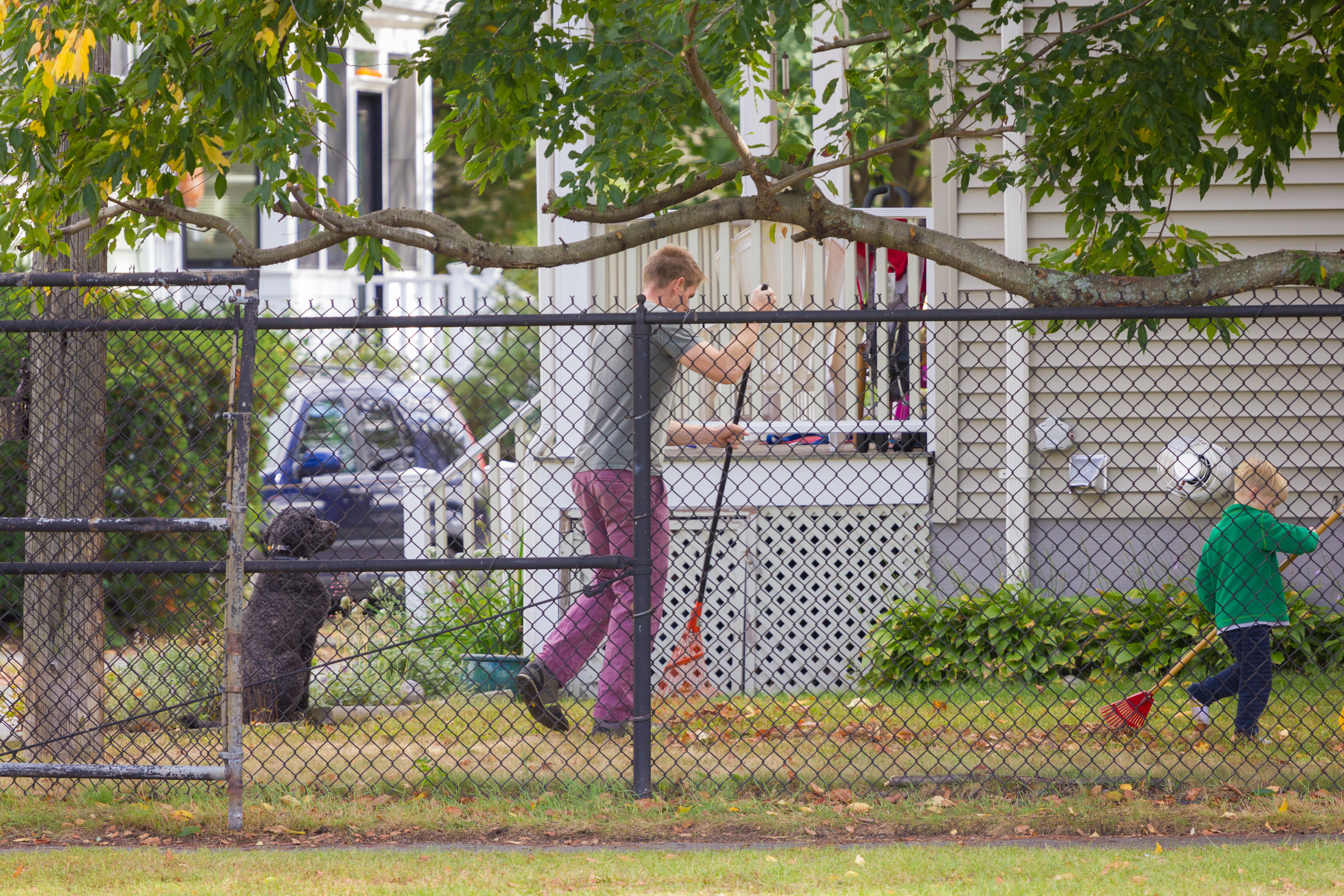 Benches along the fence between Lowell Street and the Arlington Reservoir swimming area. October 10, 2011.