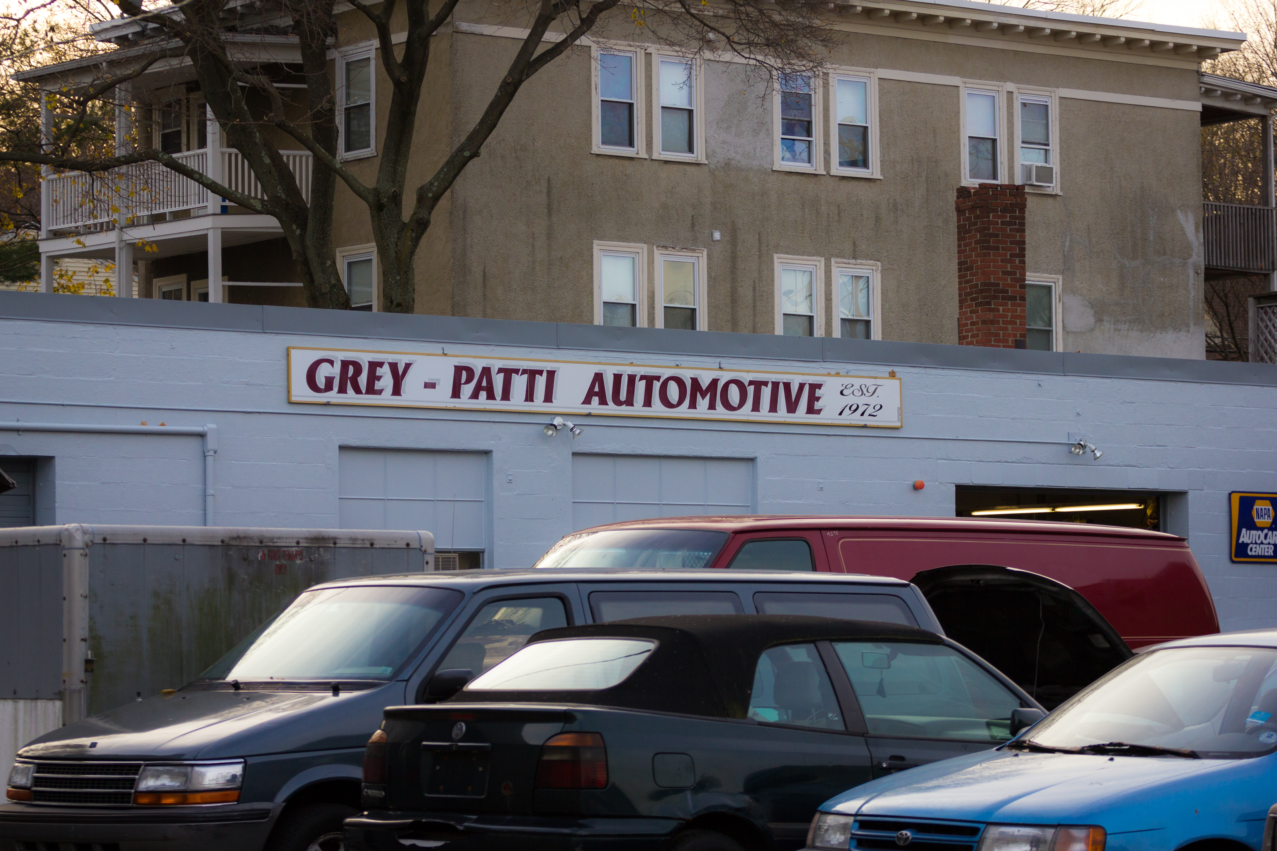 Winslow Towers on an overcast day in Arlington Center. As seen from Winslow Street. November 23, 2011.