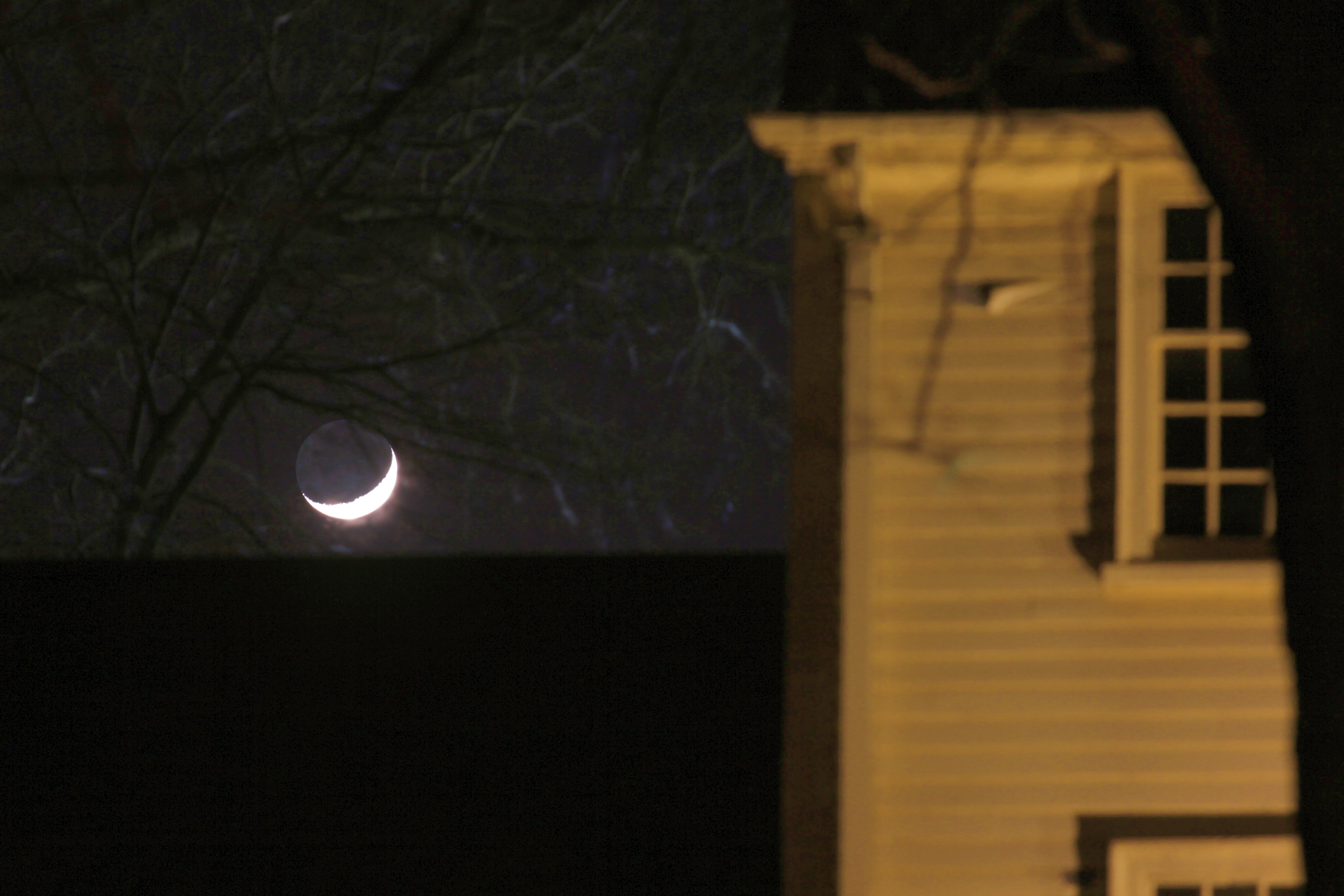 The shadow of the American flag on the front of the Jason Russell house, where, on April 19, 1775, the bloodiest battle of the first day of the American Revolution took place. April 17, 2016.