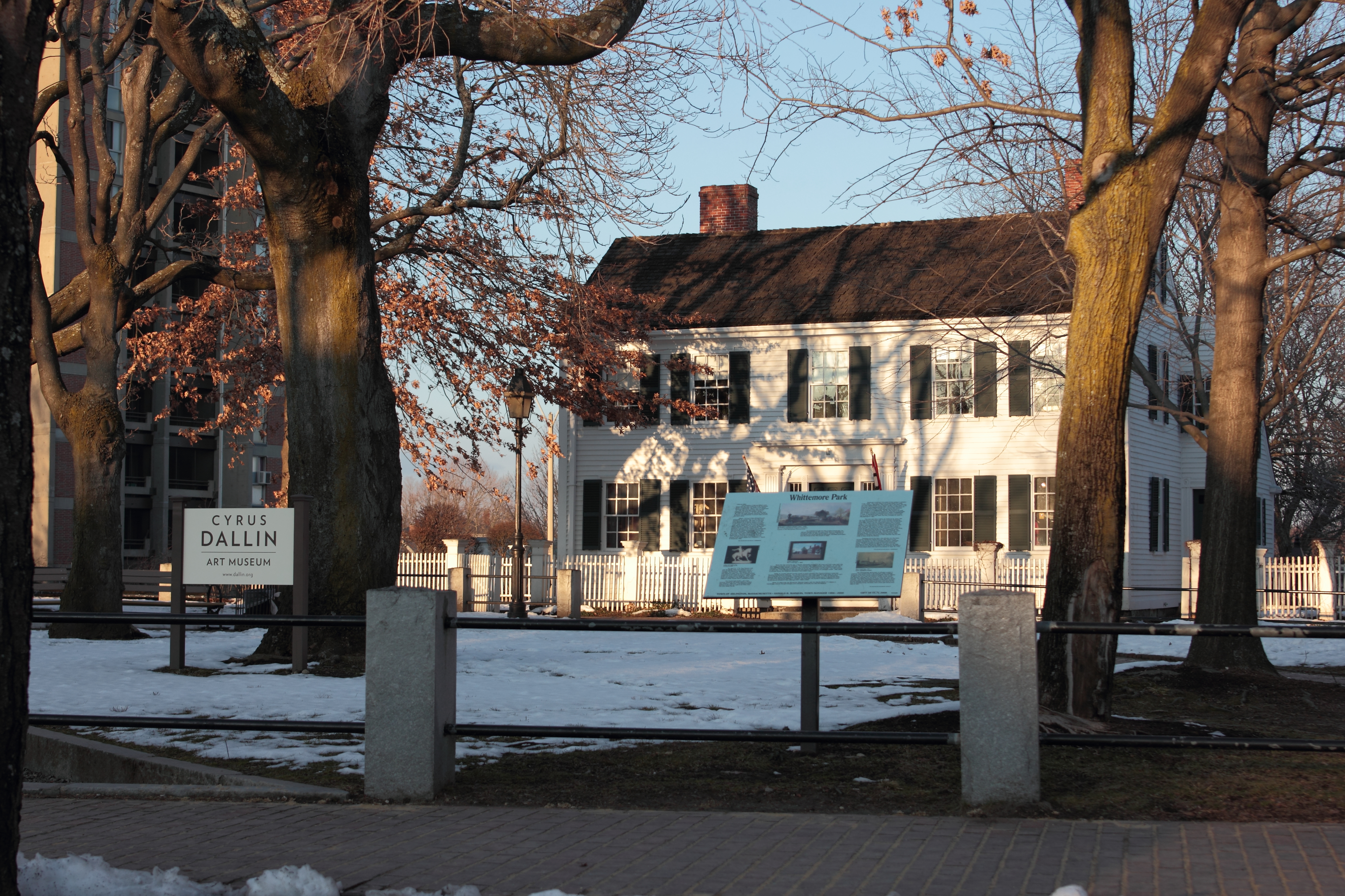 Signage along Massachusetts Avenue marking the Jason Russell House and the Smith Museum. April 17, 2016.