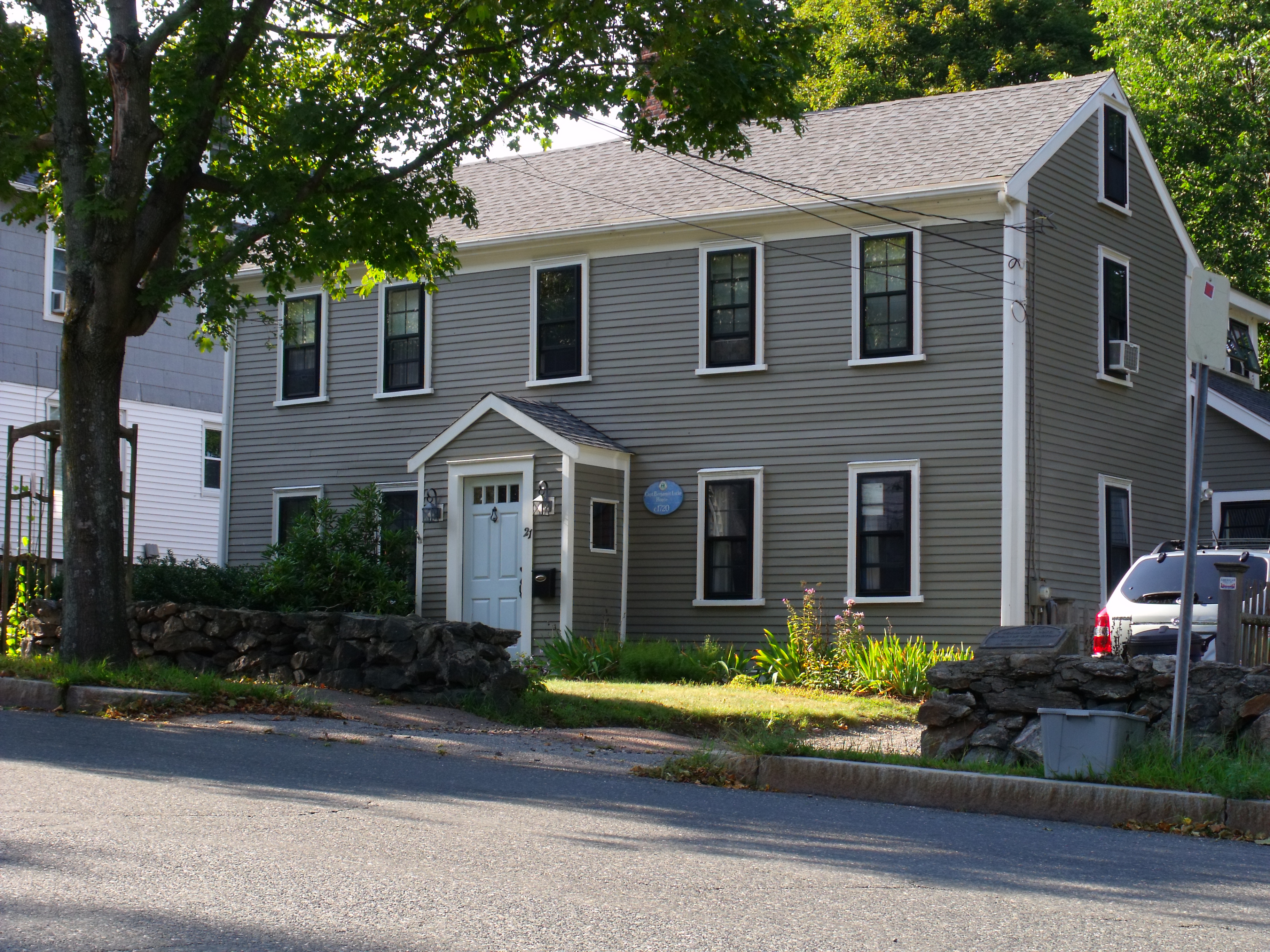 “The Benjamin Locke House (private), 21 Appleton St., was built (1726) by a captain of the militia.
