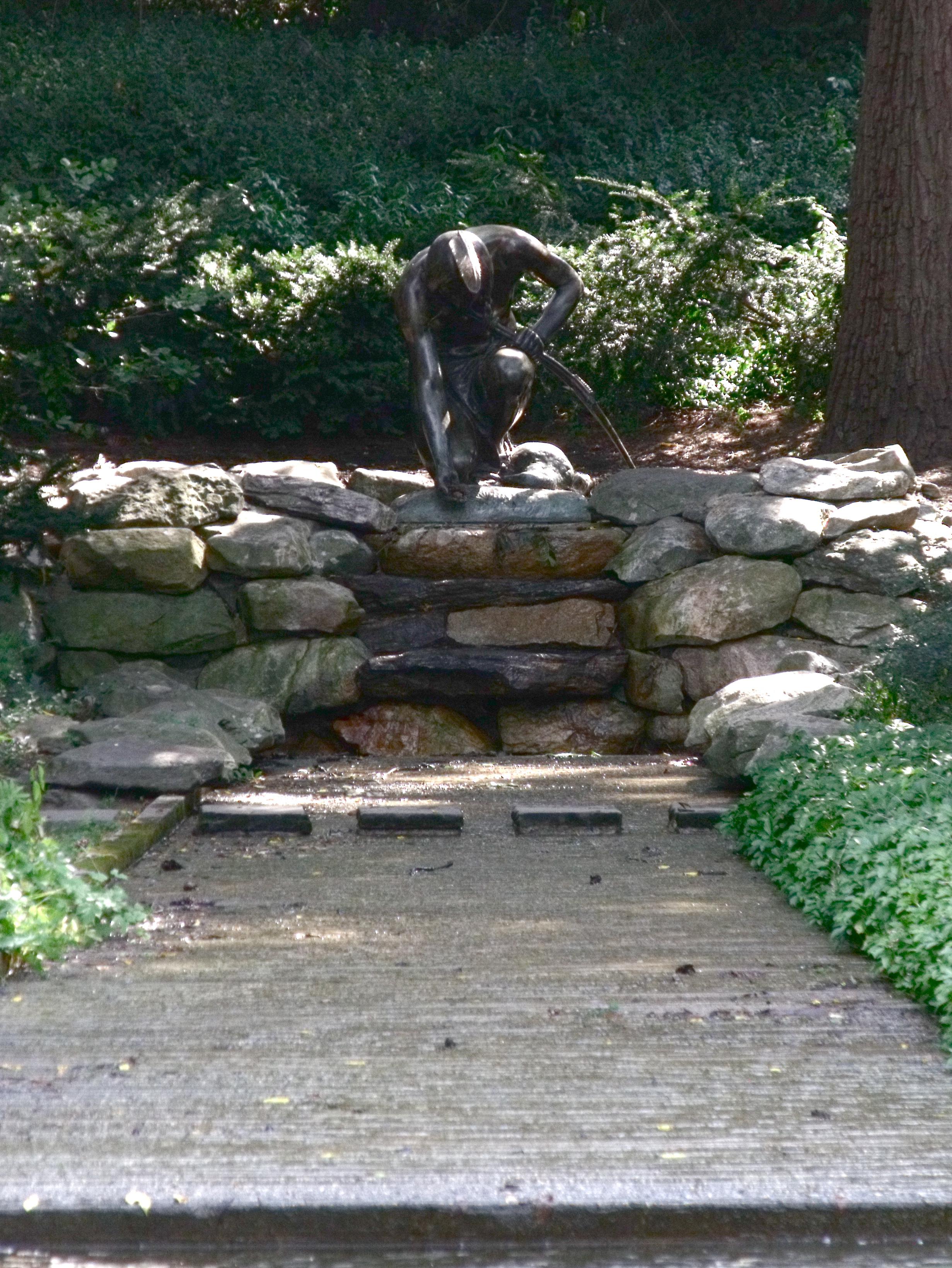 To count down the days to the end of summer, I will be taking you on a virtual walking tour of Arlington–the same one outlined in 1937’s The WPA Guide to Massachusetts. Each entry will include an excerpt from the book about each site visited. Hopefully this will give us a little insight as to how things have changed in the past 73 years. Though not a numbered stop on the tour in the book, the Indian Hunter is mentioned briefly on its own line.