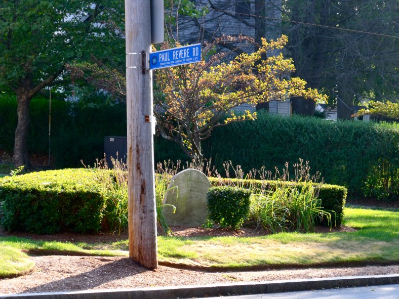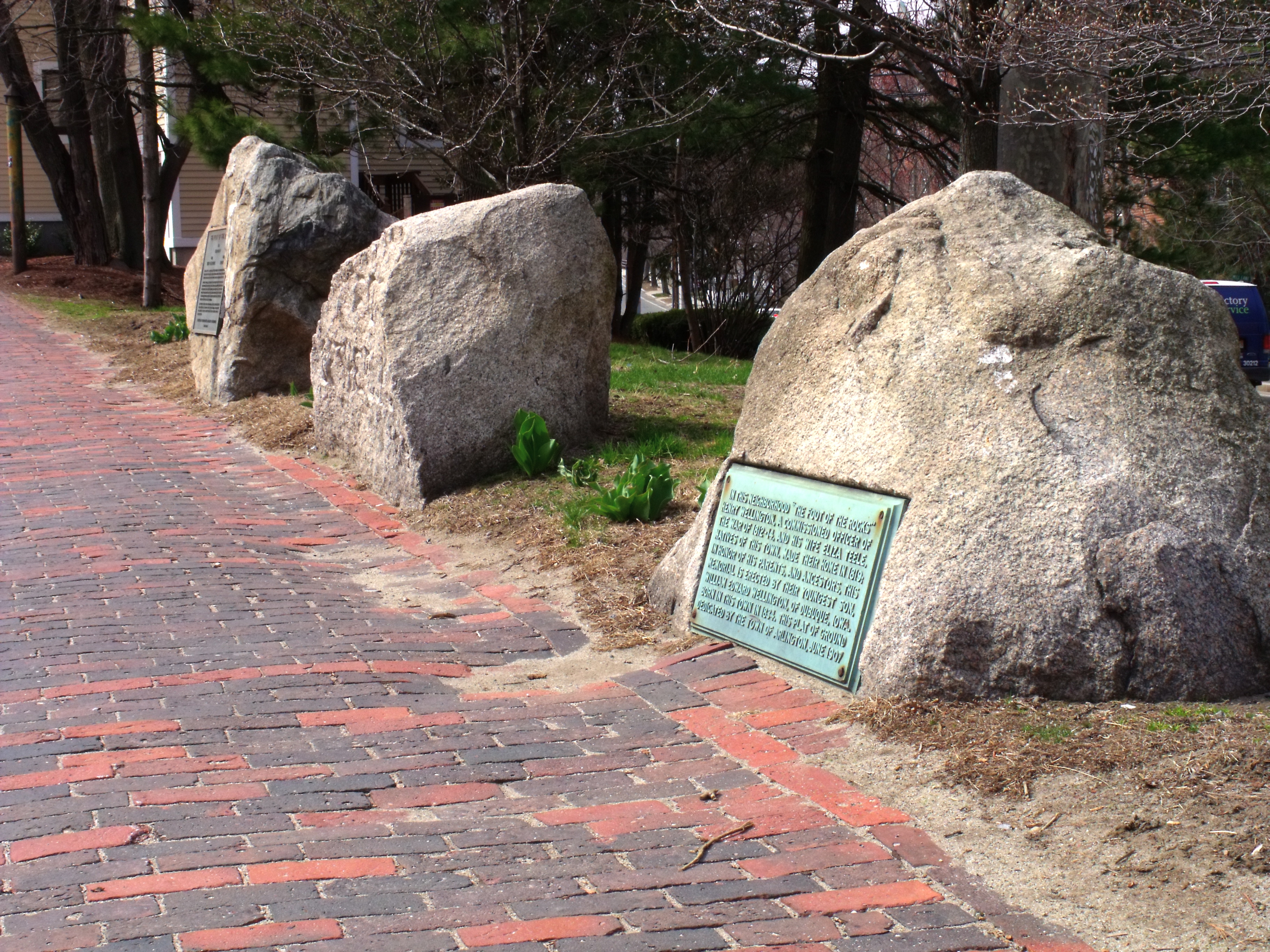 A plaque at Massachusetts Avenue and Lowell Street reminding passers by of the fighting on the first day of the American Revolution at the Foot of the Rocks. April 11, 2011.