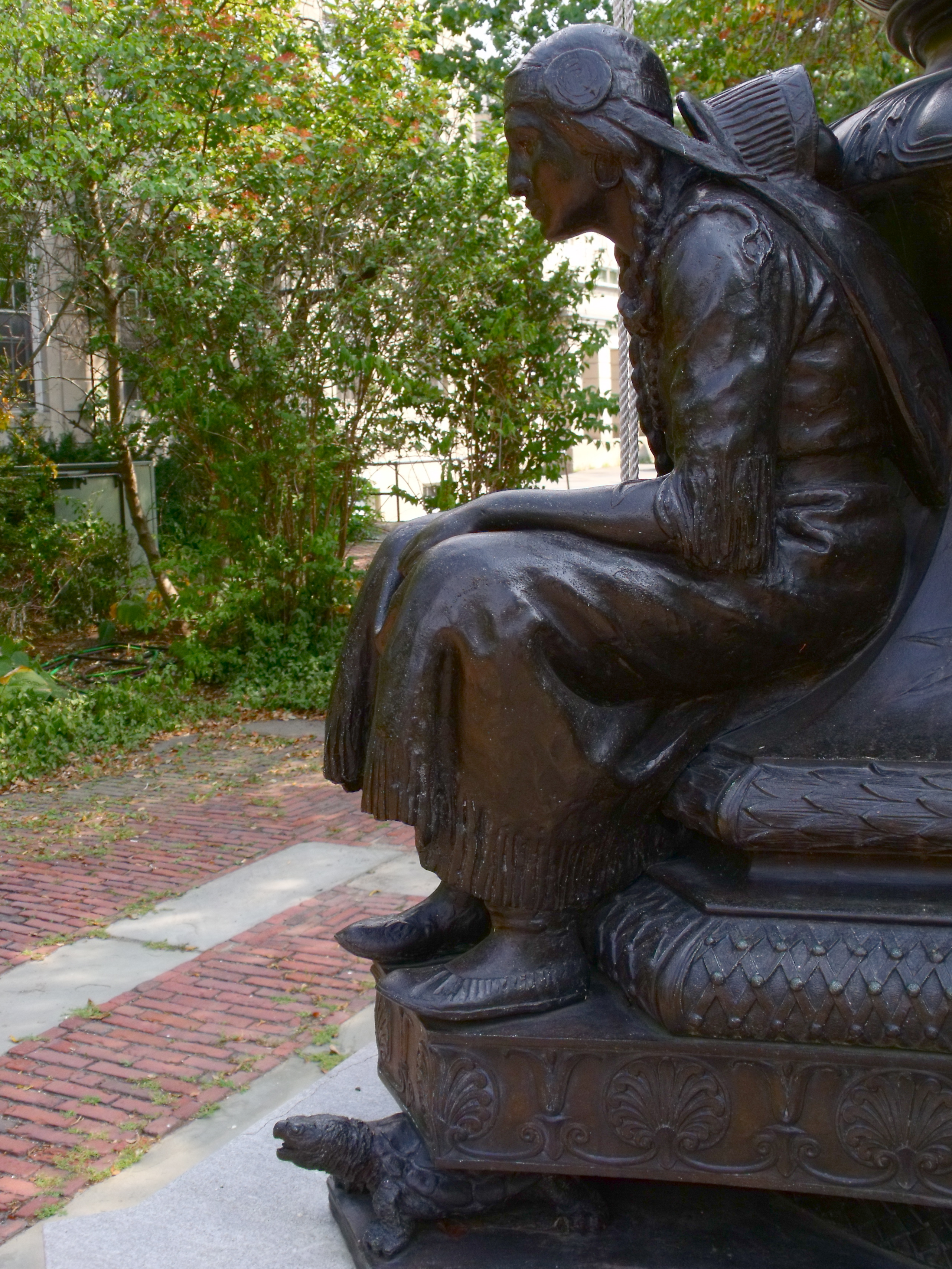 Squaw Sachem, on of the four figures by Cyrus E. Dallin at the base of the Robbins Memorial Flagstaff. August 9, 2010.