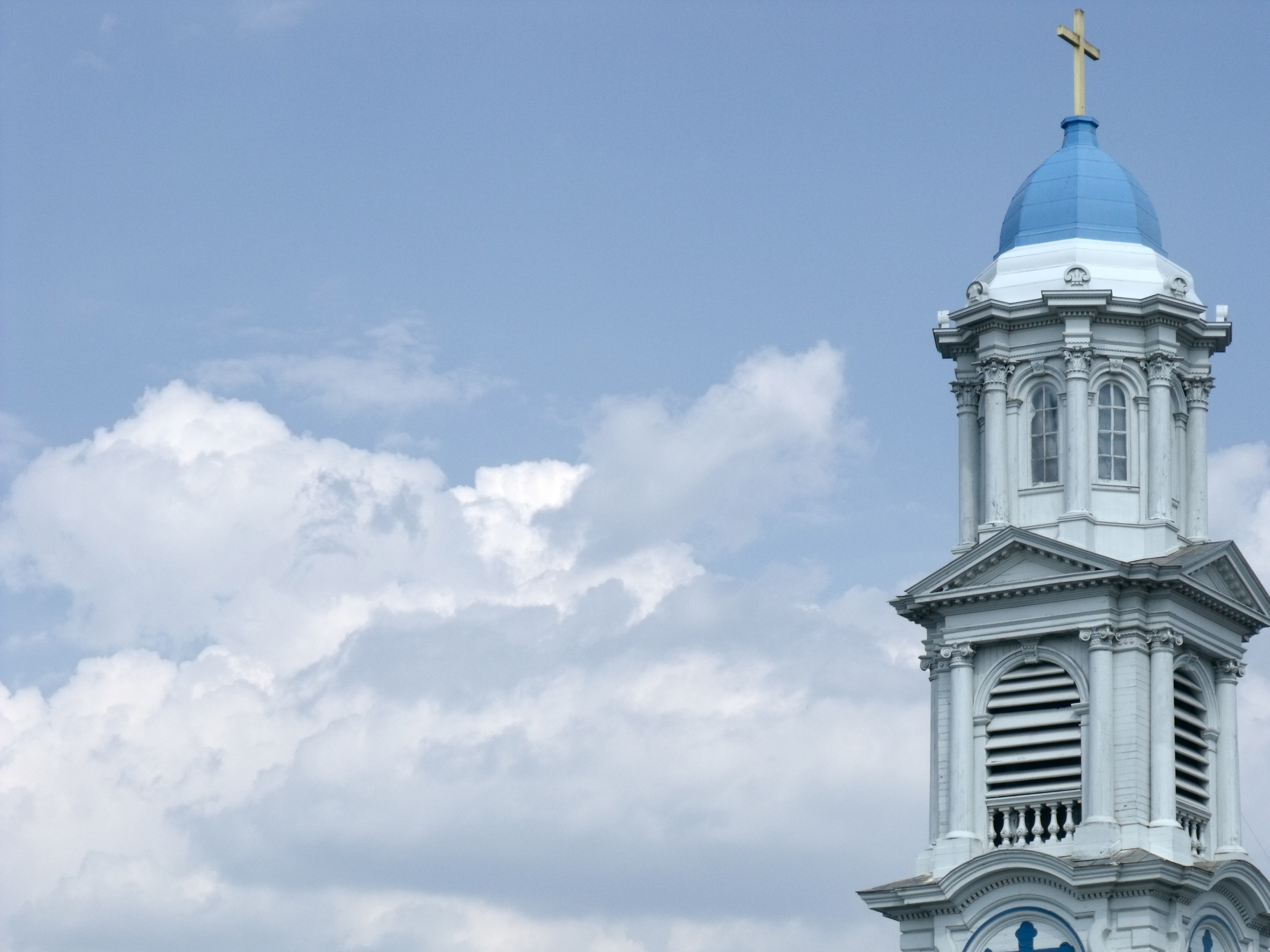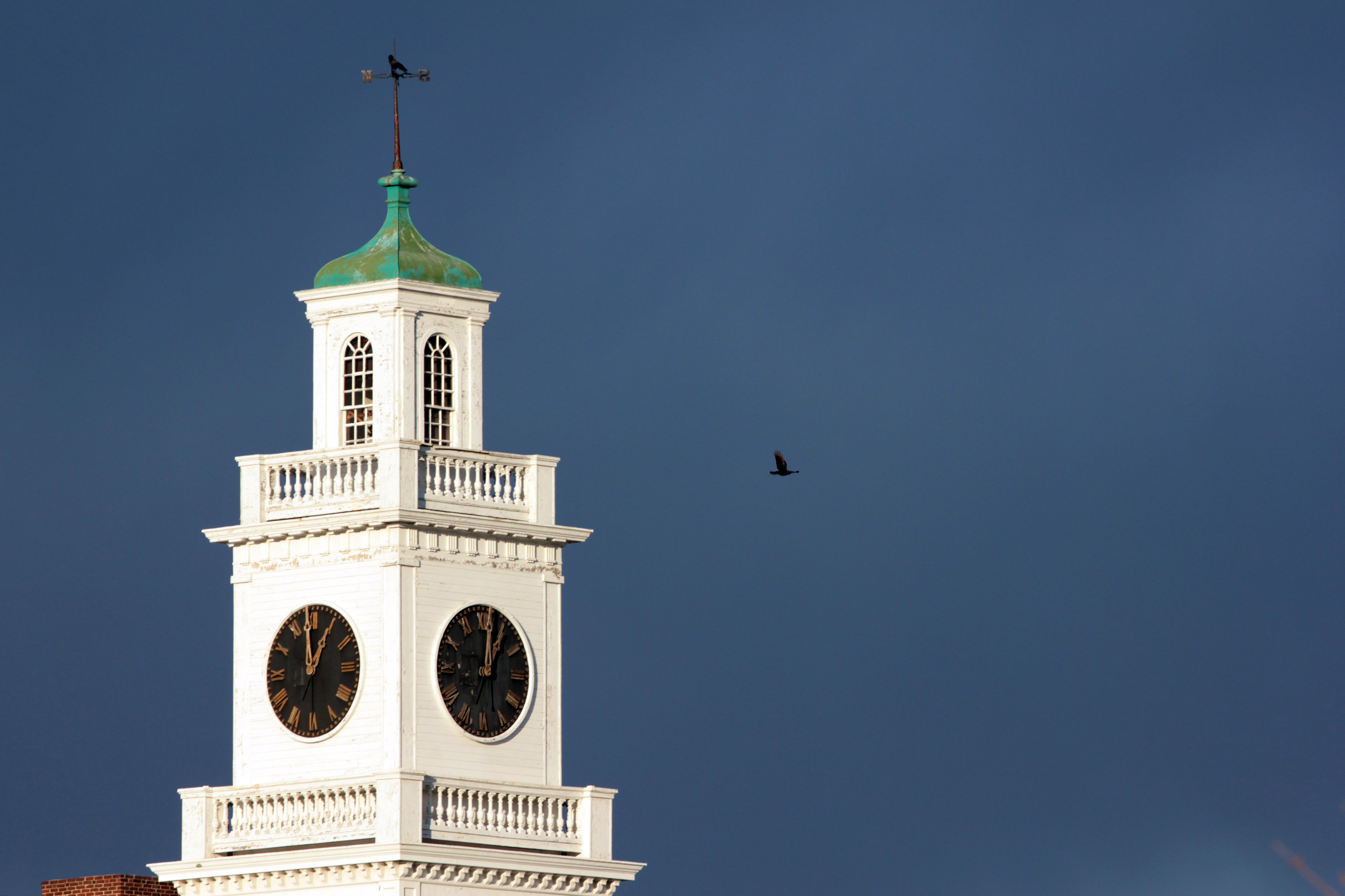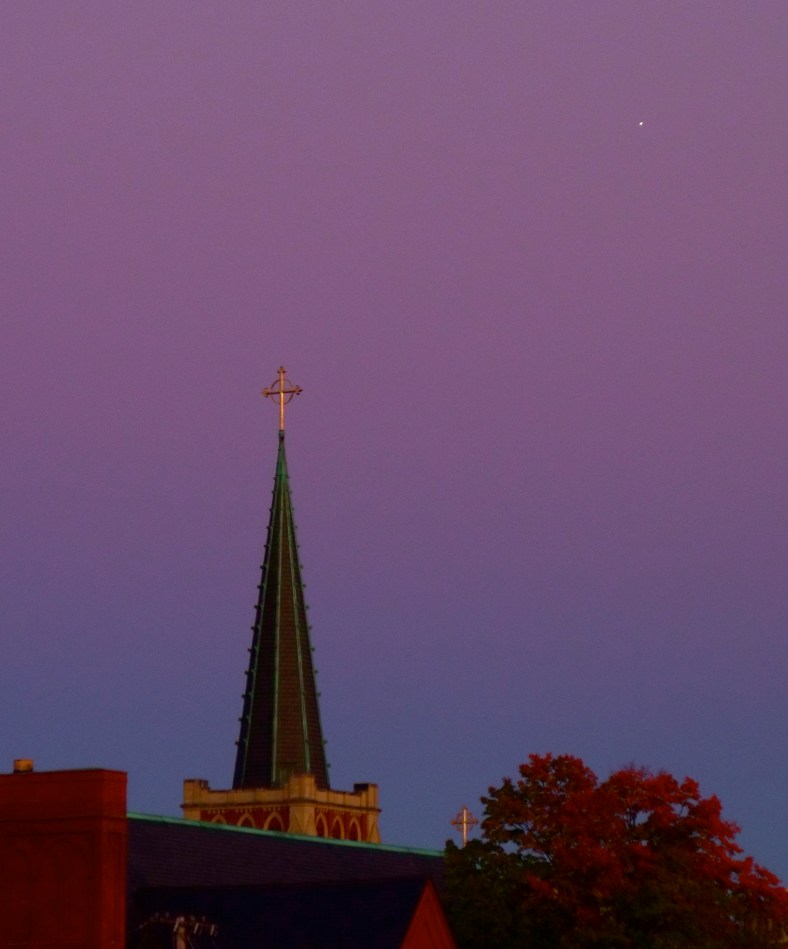 The spire of the Pleasant Street Congregational Church—now The Boston Church of Christ. November 5, 2010.