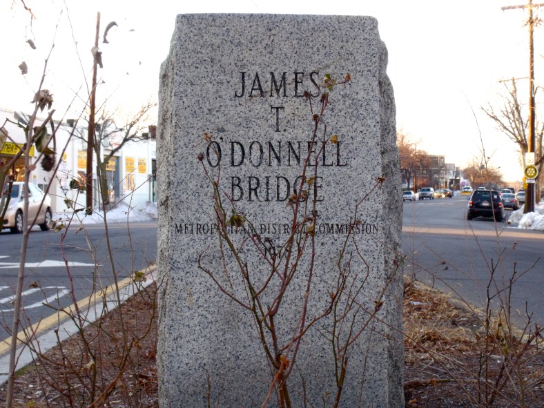 A plaque at the intersection of Brattle and Summer Streets remembers Lt. Eugene F. McGurl, a navigator in the famous "Thirty Seconds Over Tokyo" Doolittle bombing raids. Lt. McGurl was killed in action when his bomber crashed in the Himalayas on February 8, 1942 after a successful raid in Burma. His name can be found in the Manilla American Cemetery and Memorial in the Philippines on the Tablets of the Missing. February 1, 2012.
