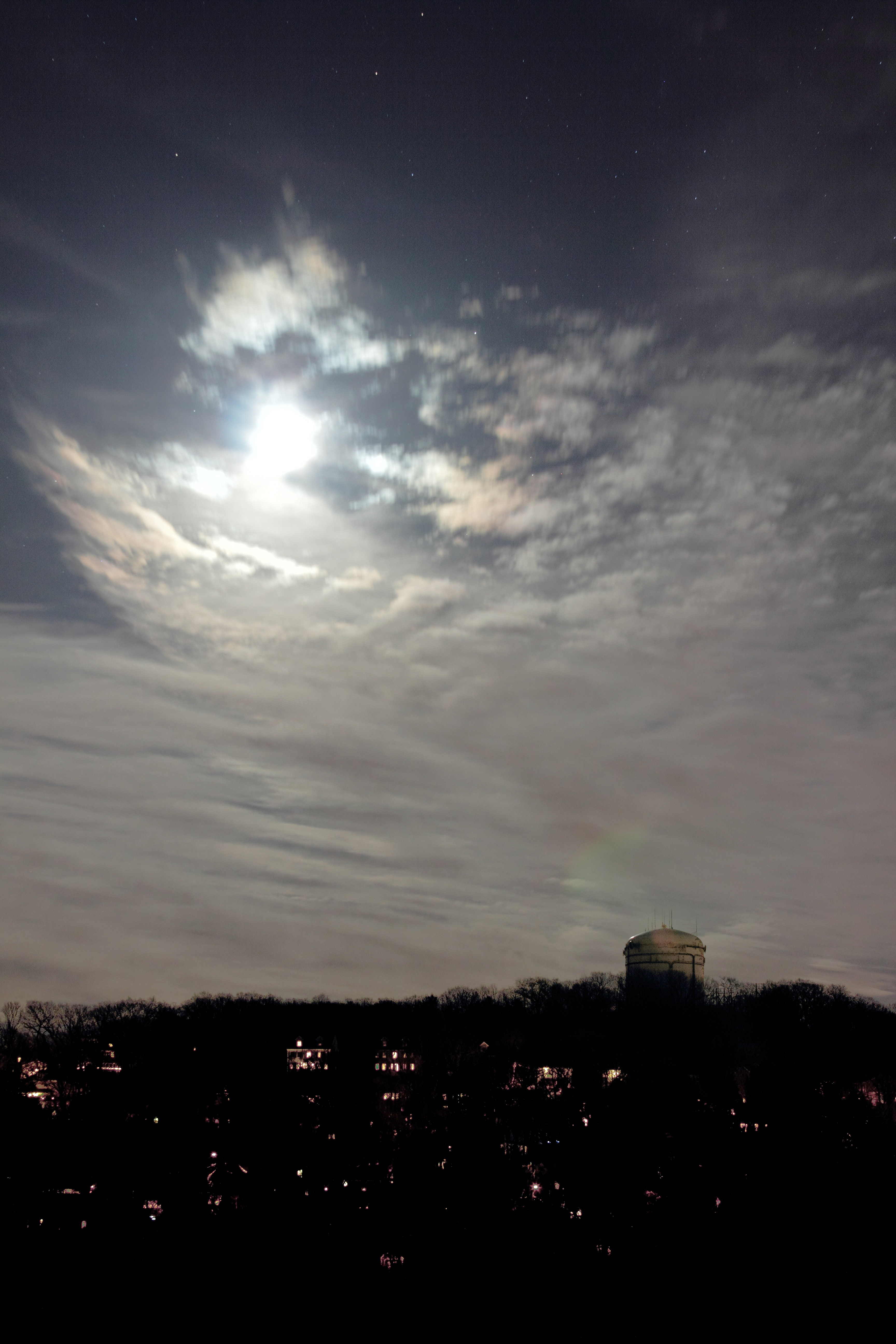 The dome of the Park Avenue water tower seen above—and through—the trees from the grounds around the Turkey Hill water tower. June 7, 2010.
