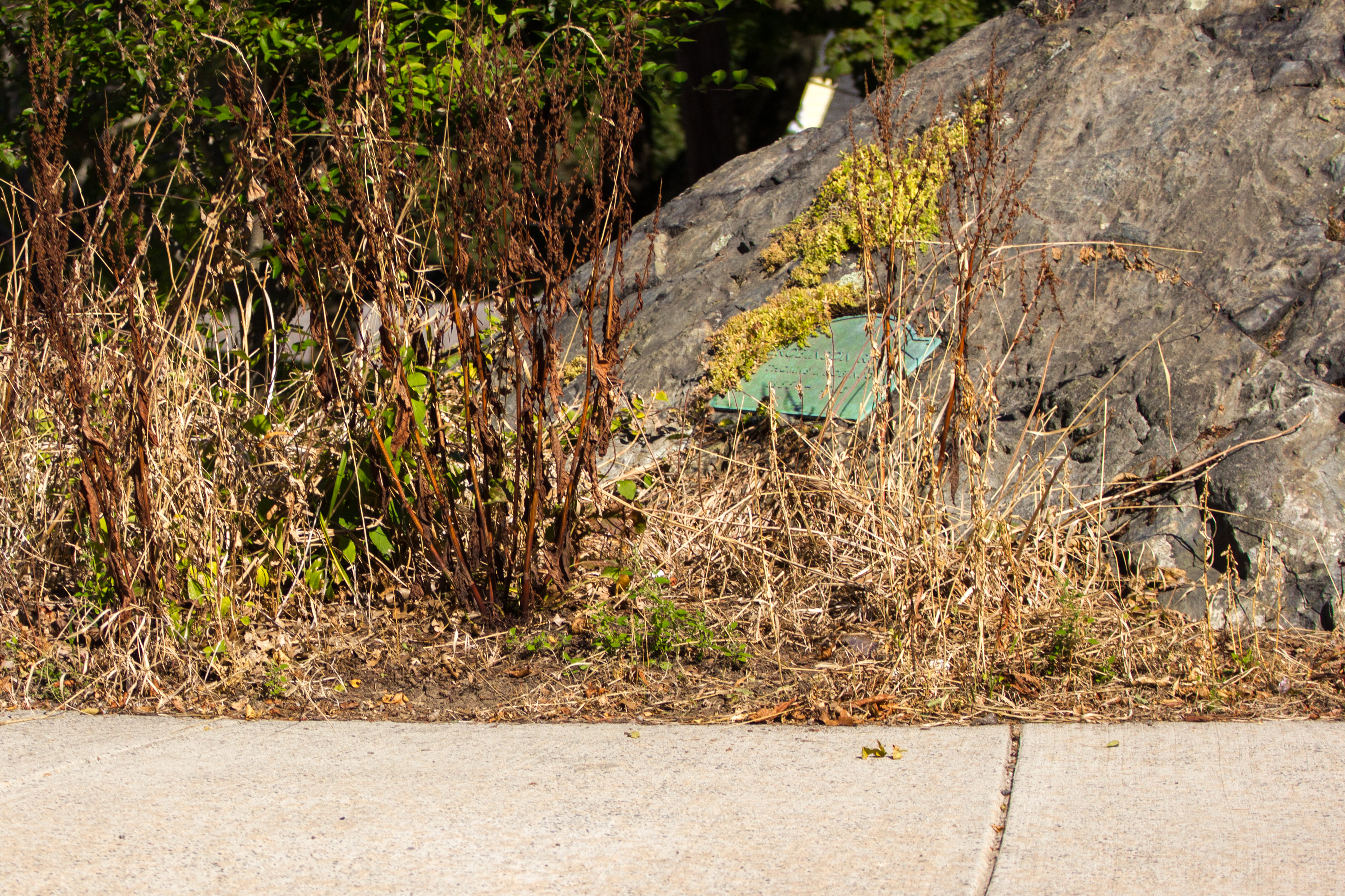 A detail of colonial mile marker 8. Eight miles from Boston by road and about seven and a half as the crow flies. August 30, 2011.