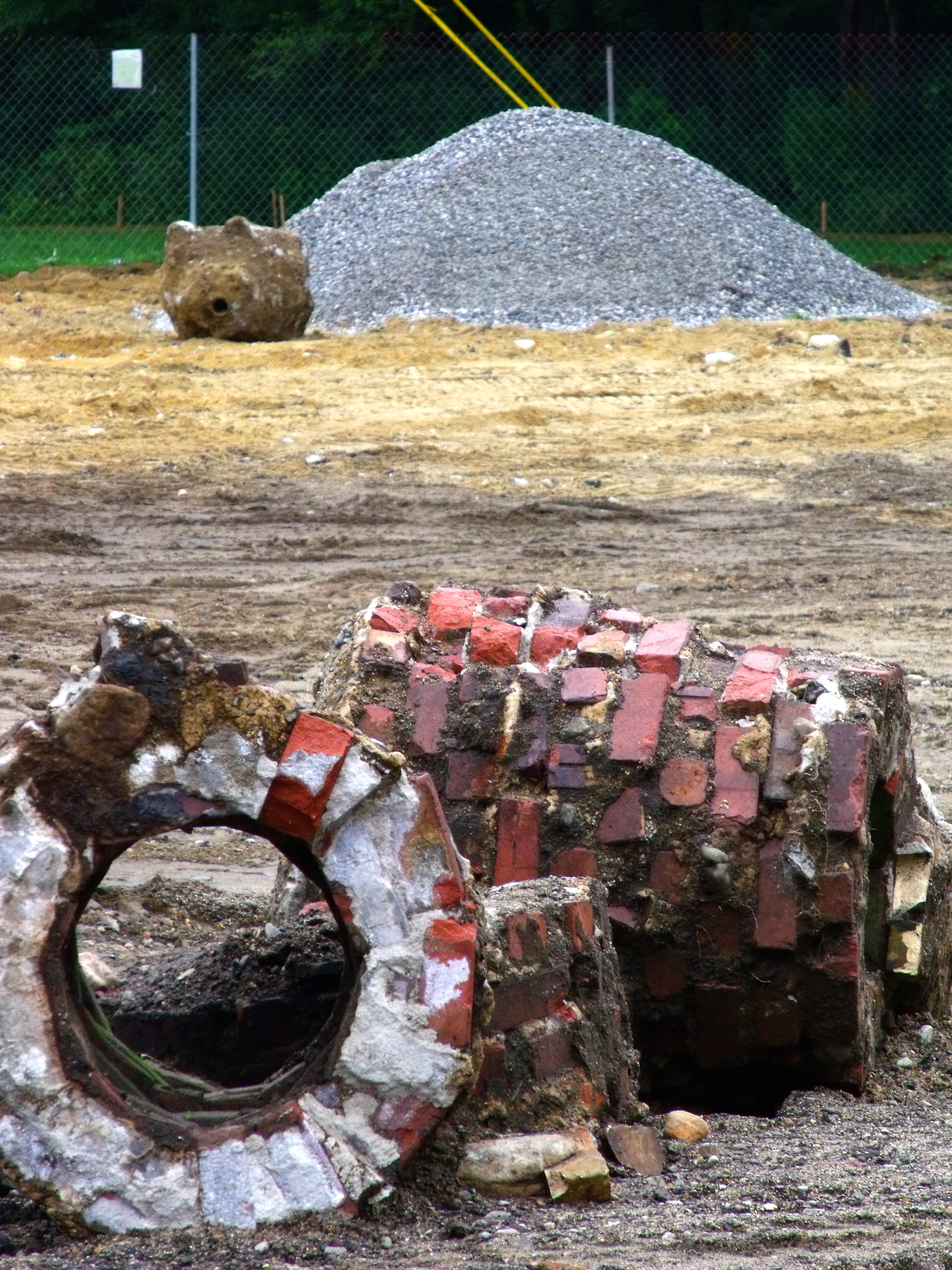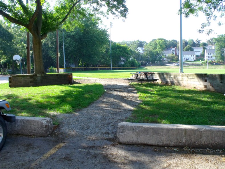 Wooden stairs frame the bare dirt where once children slid down the long slides at Robbins Farm Playground. The slides are planned to be replaced after a fundraising effort. August 1, 2011.