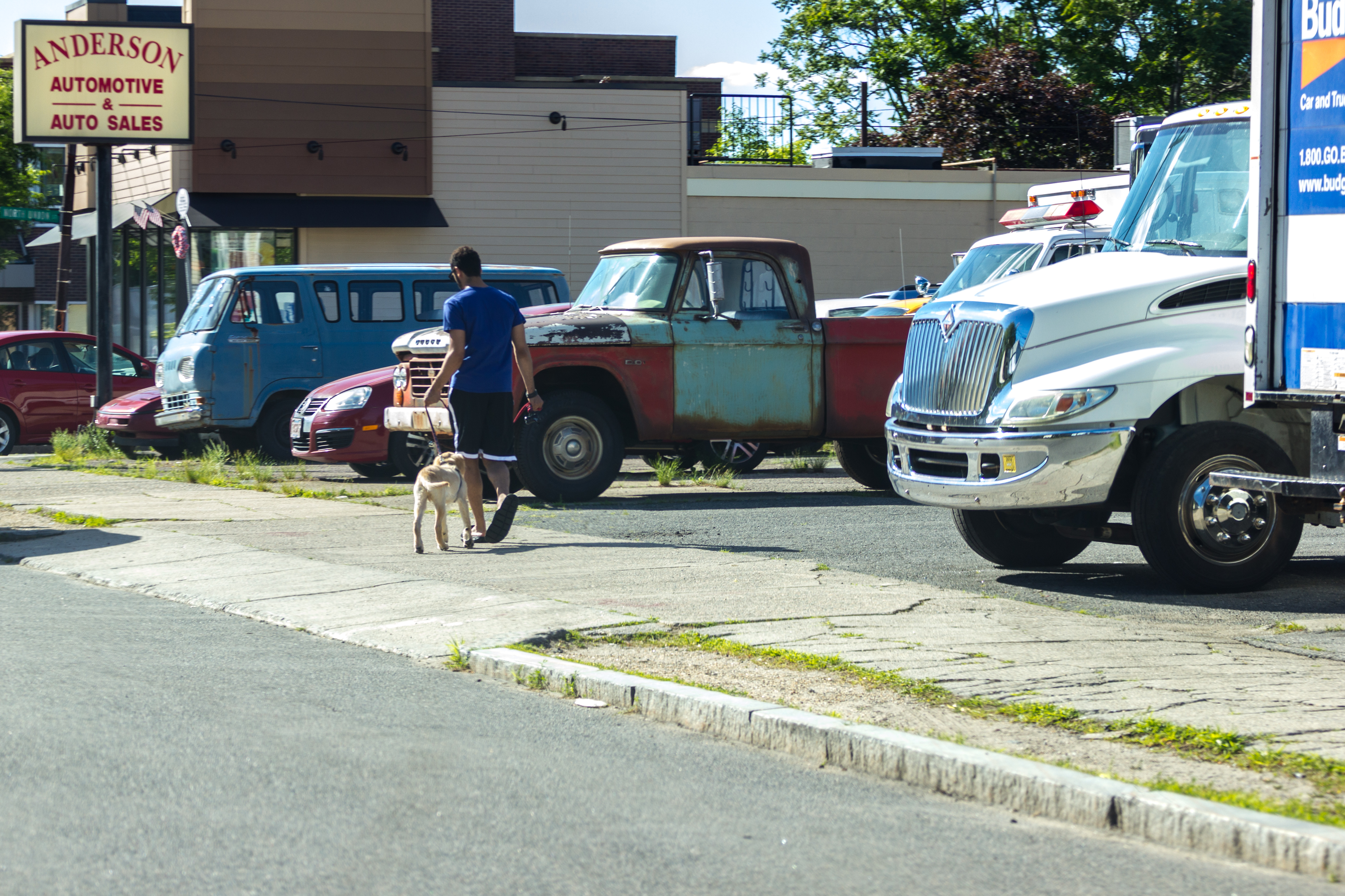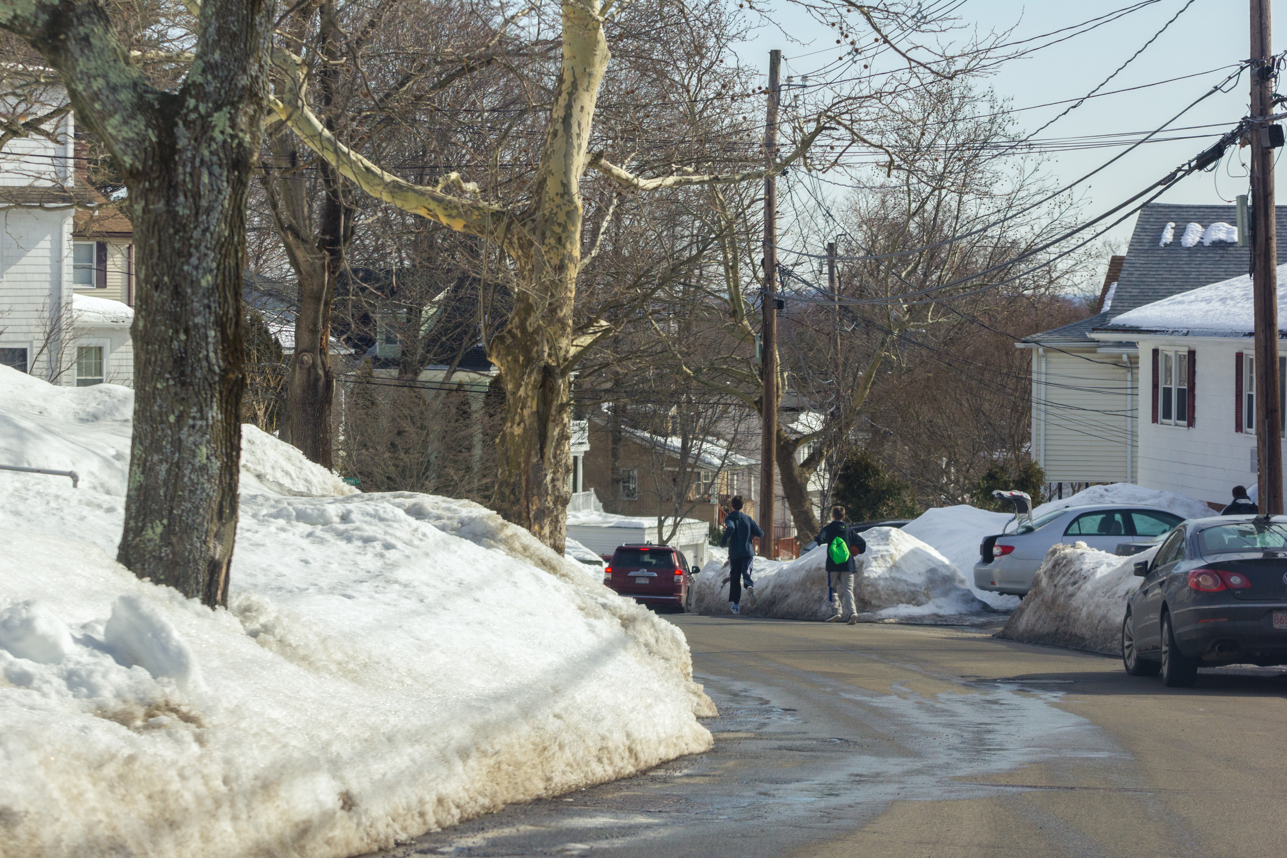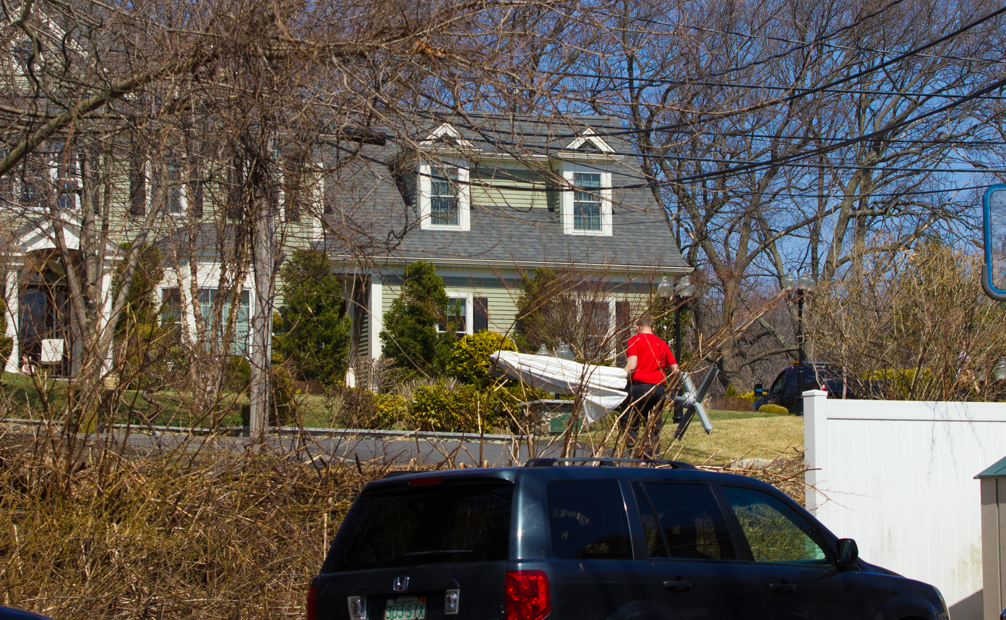 Town workers load up traffic cones, barrels, and signs that blocked cars from driving toward Massachusetts Avenue during the Sunday Patriots’ Day parade. April 17, 2016.