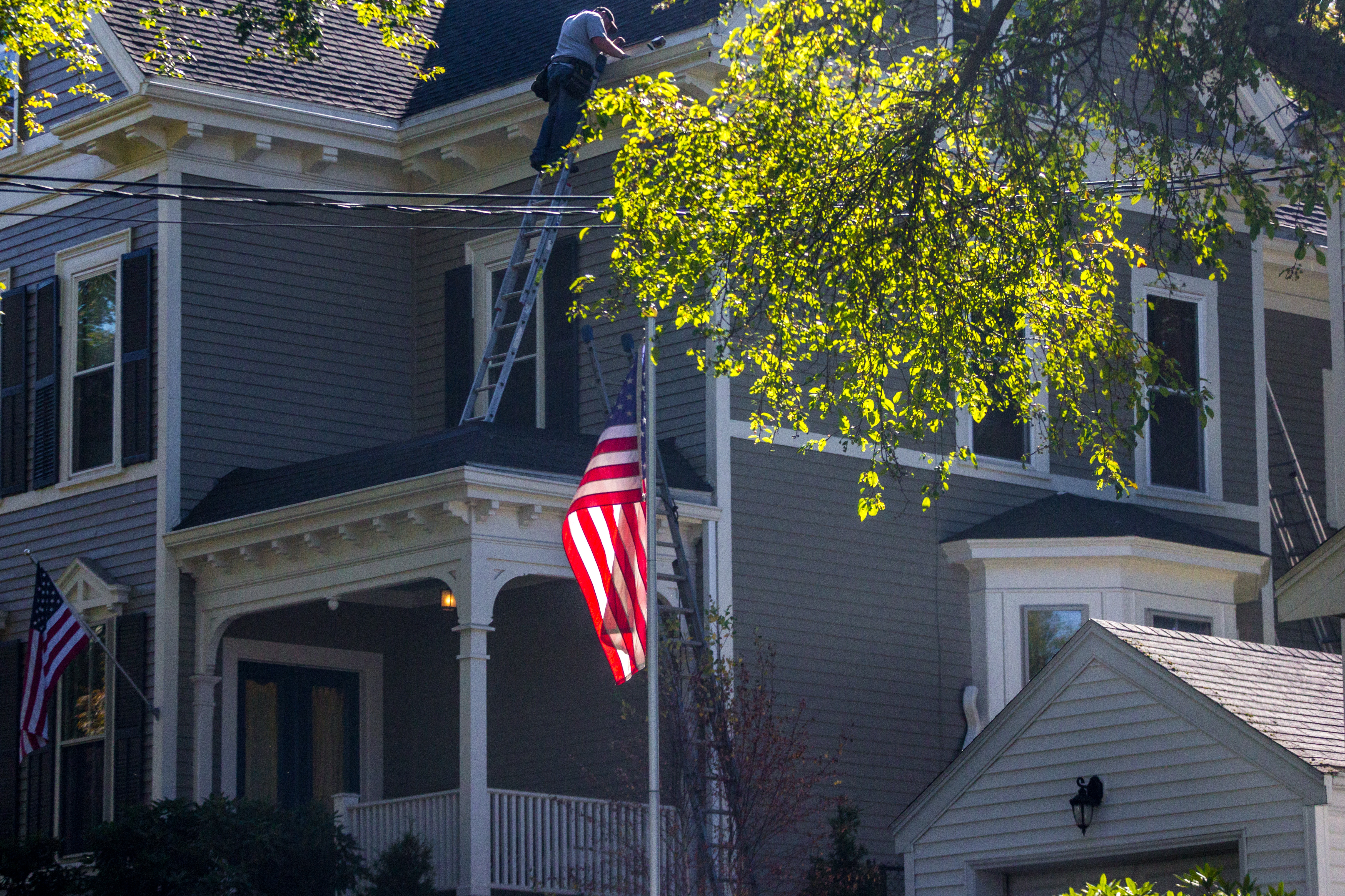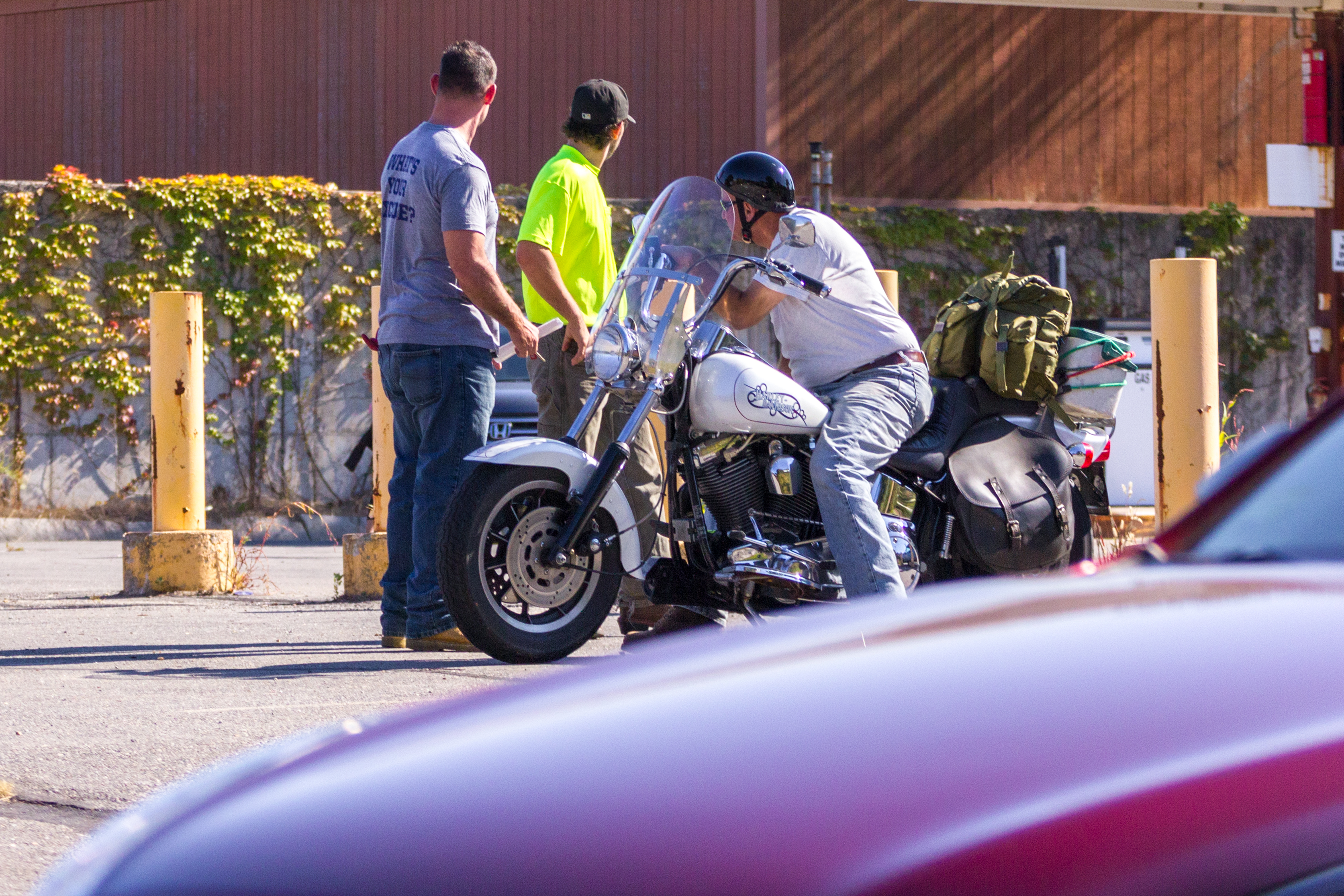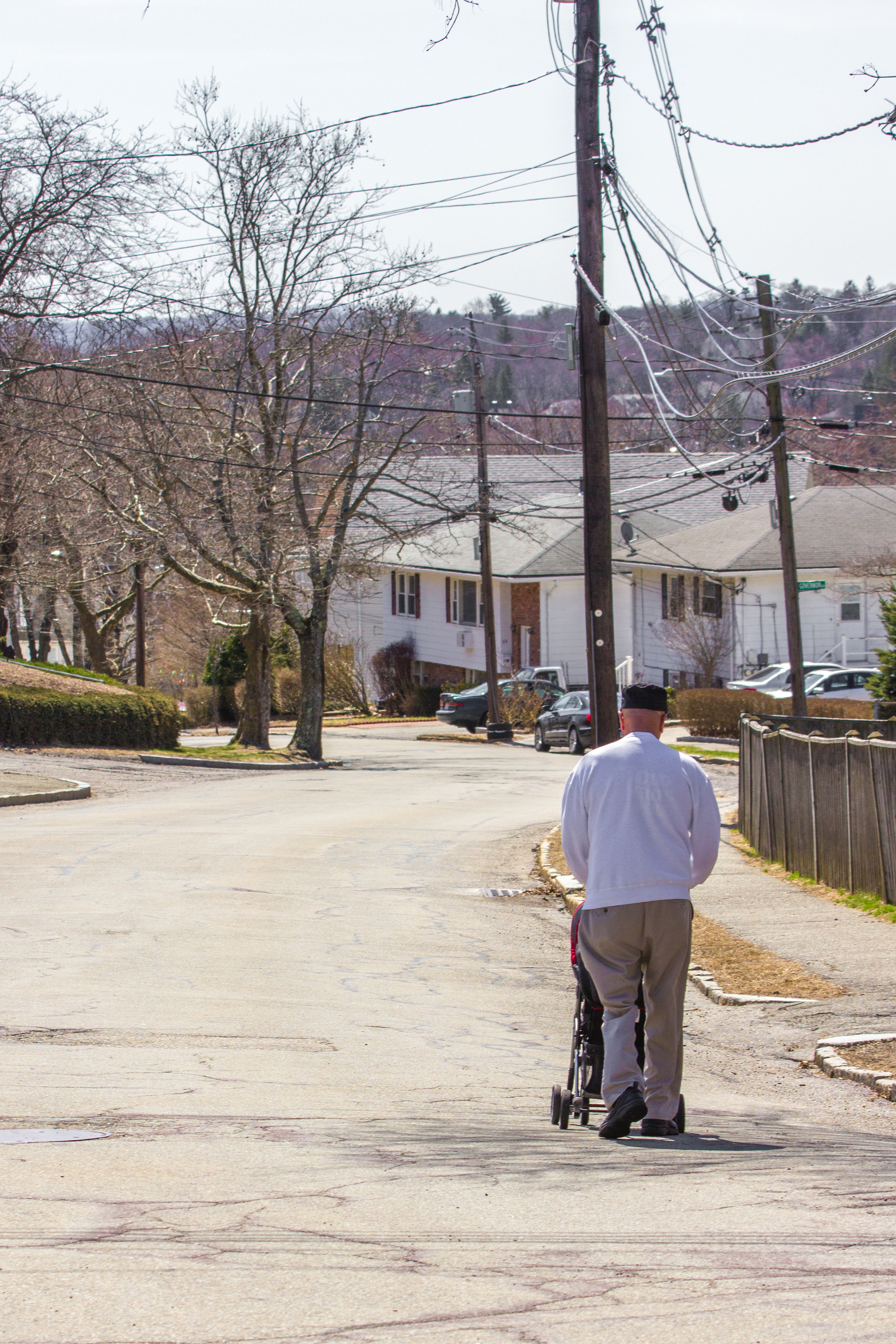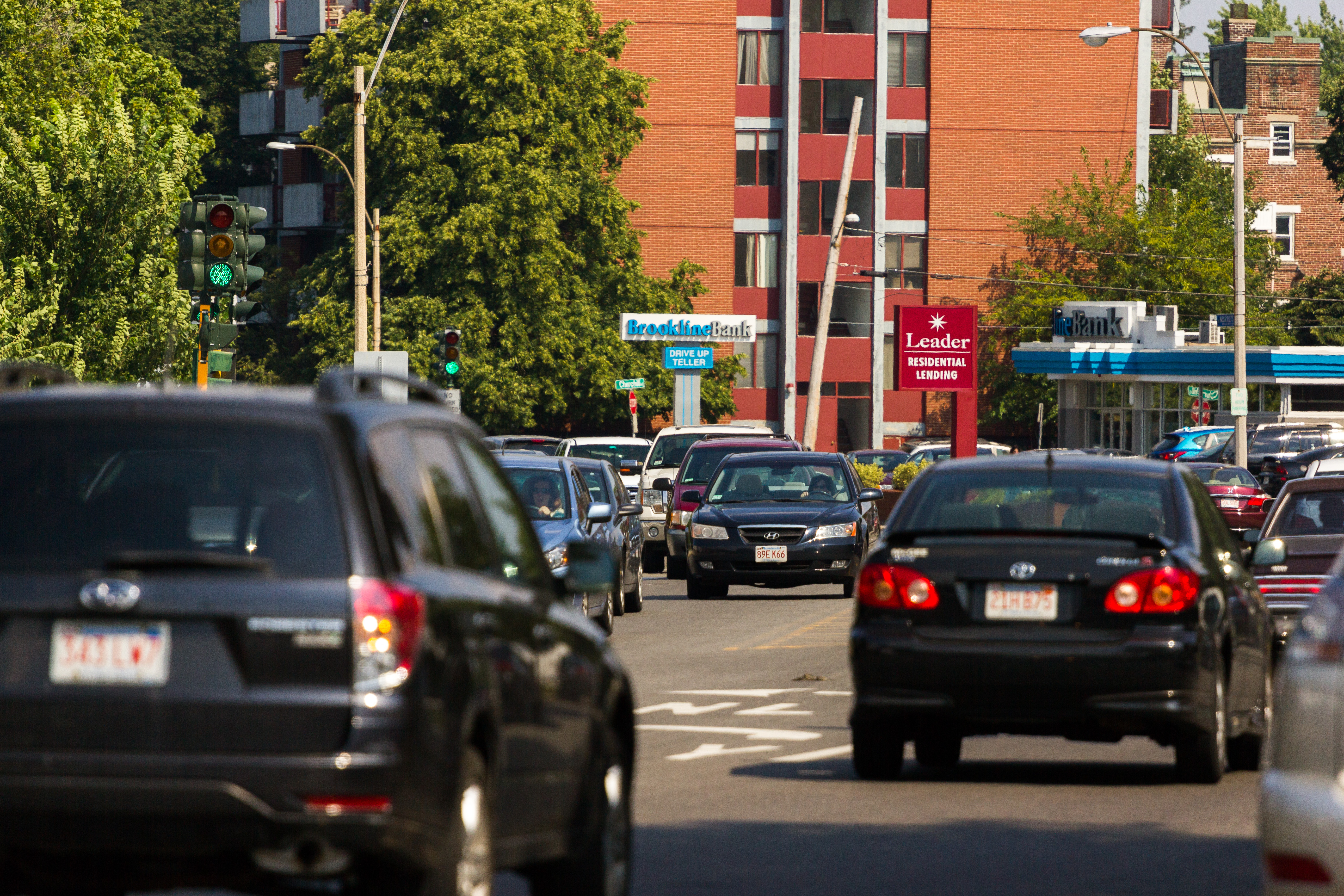 Town workers load up traffic cones, barrels, and signs that blocked cars from driving toward Massachusetts Avenue during the Sunday Patriots’ Day parade. April 17, 2016.