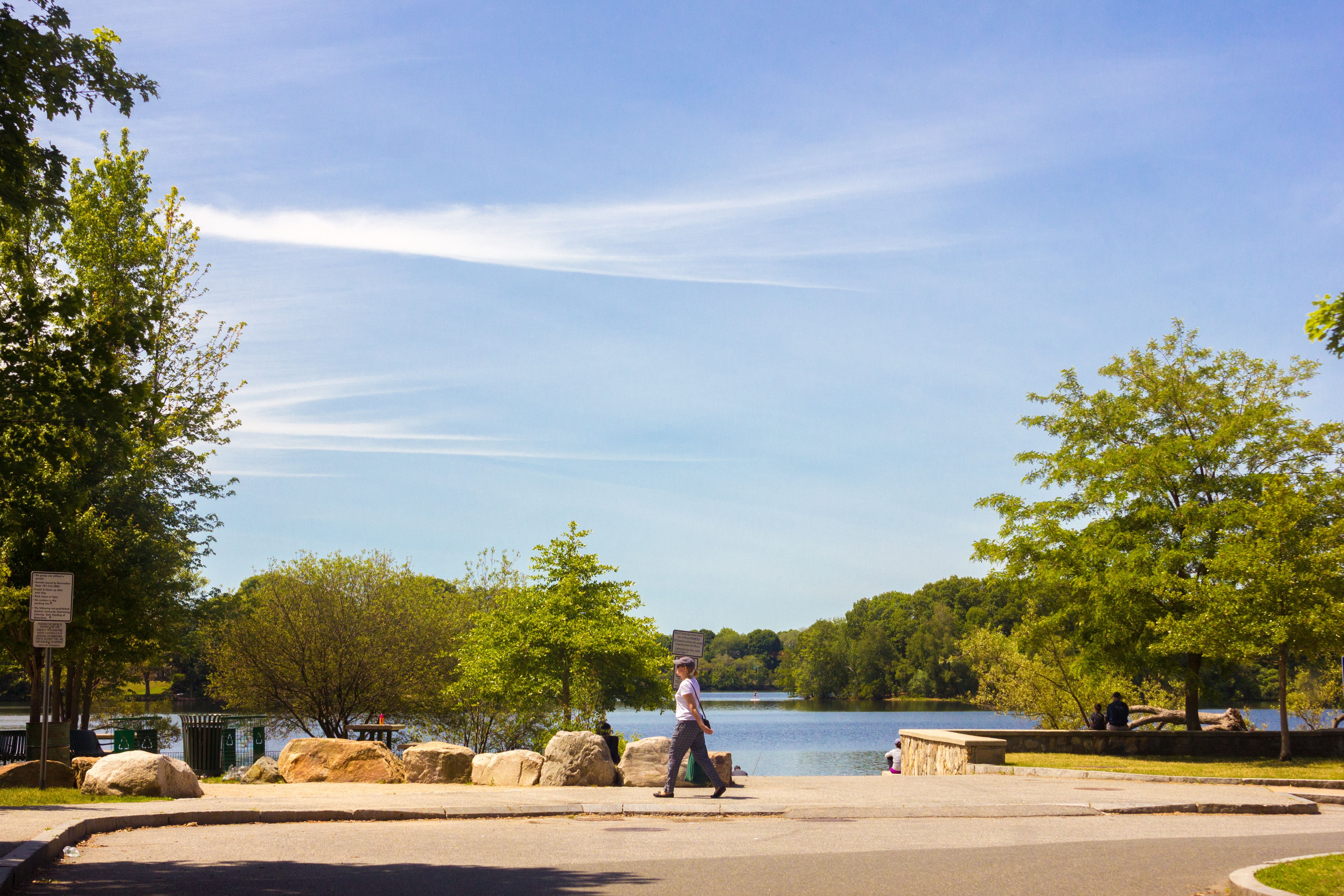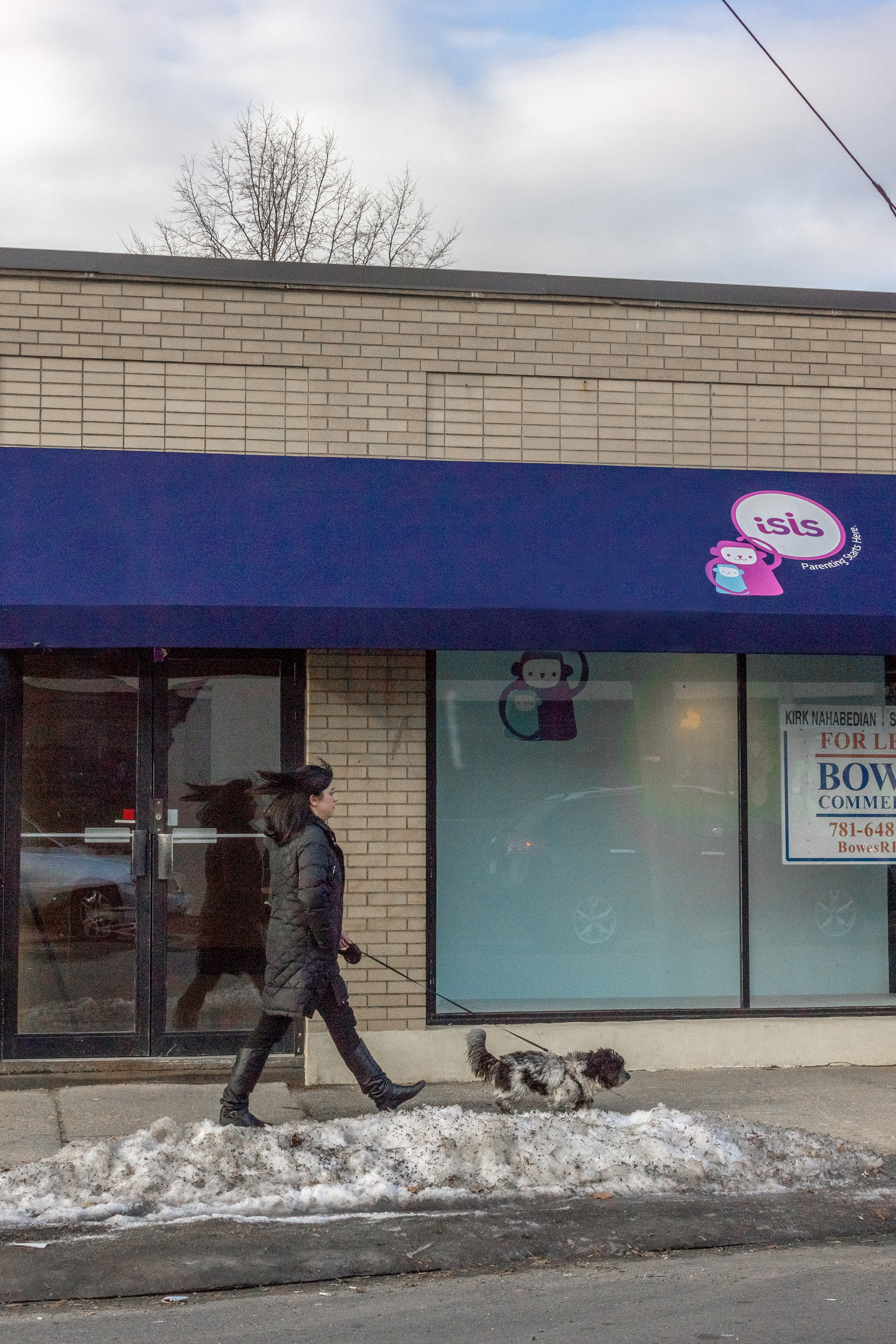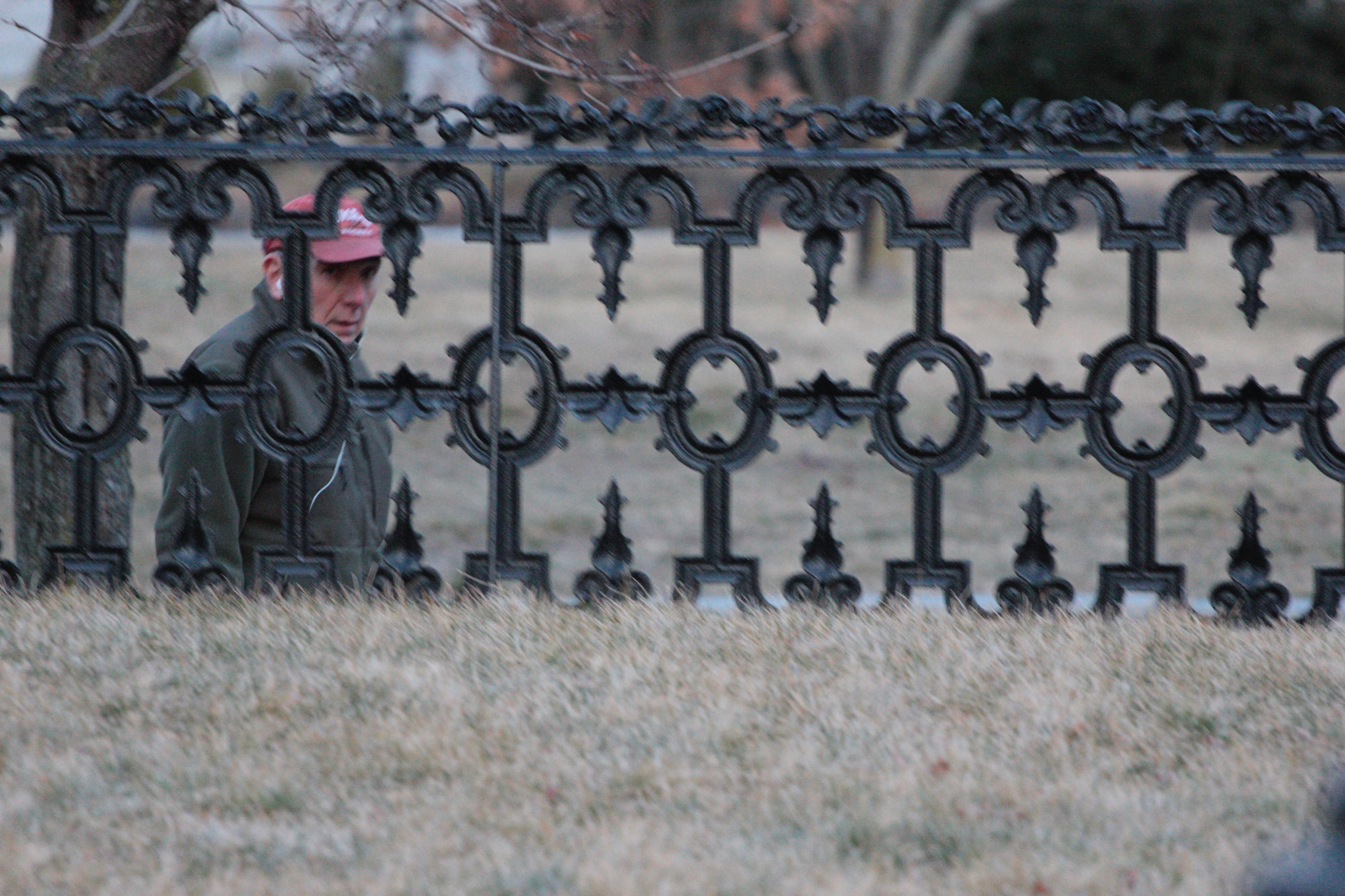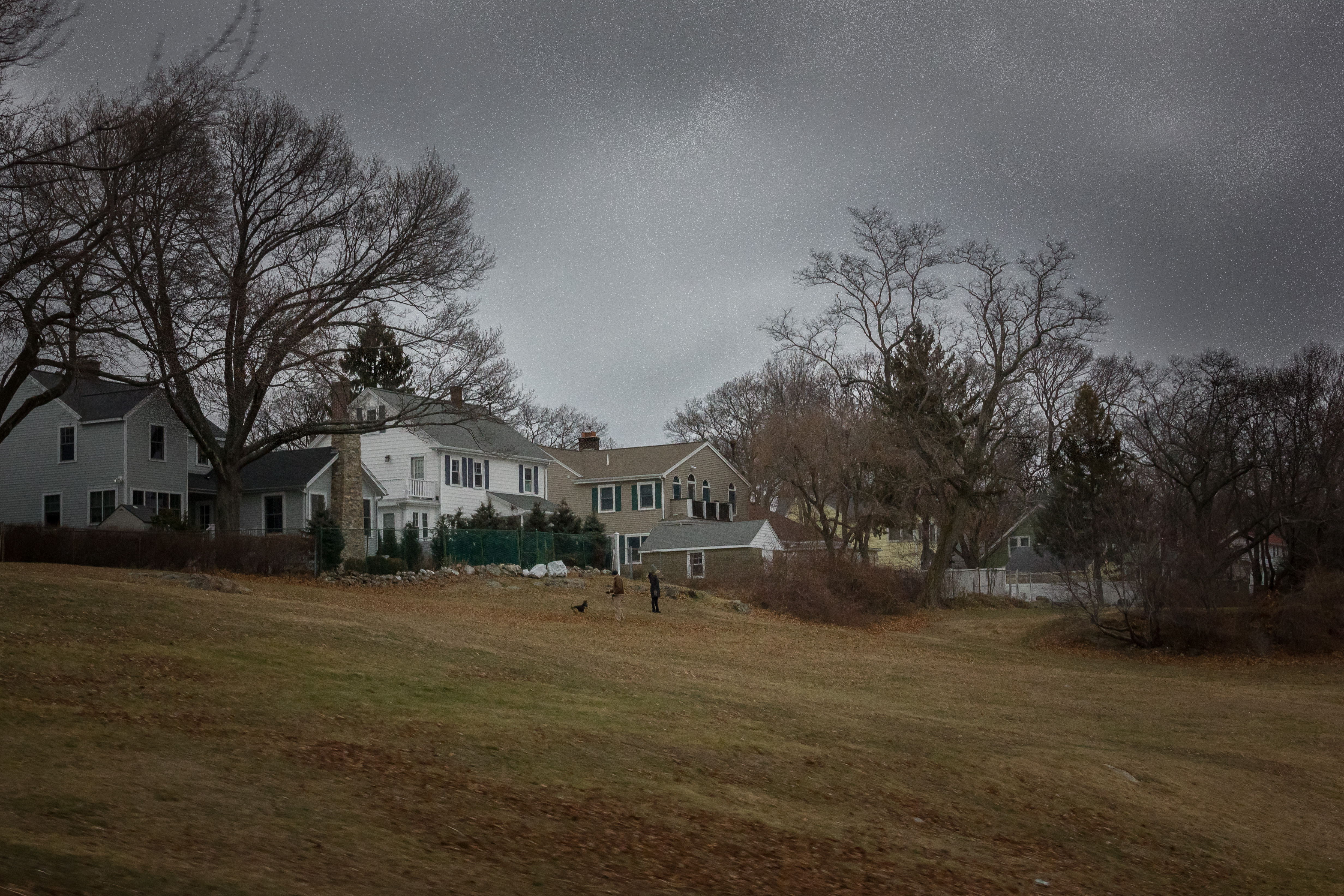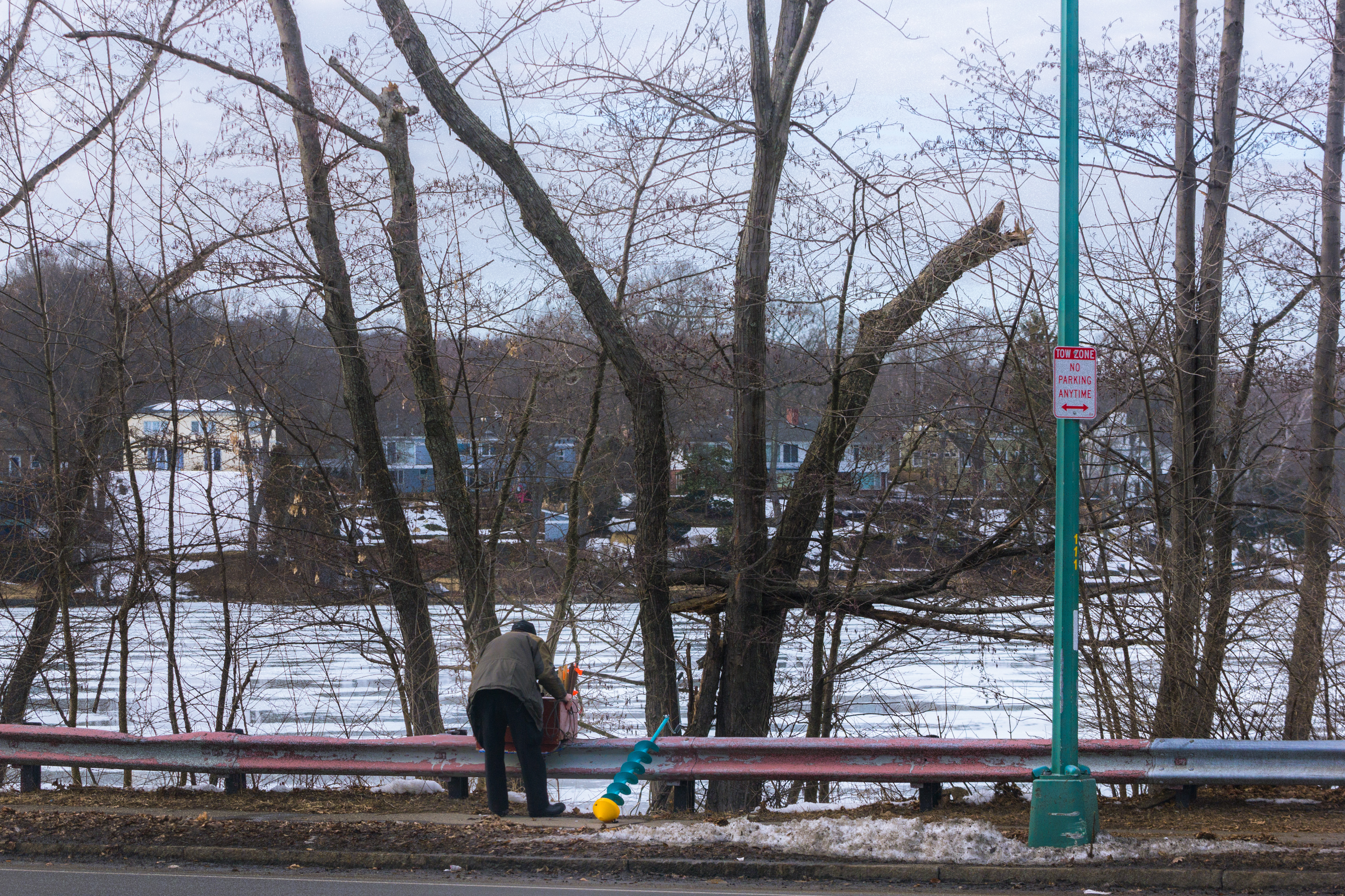 A man walks his dog around a frozen Hill’s Pond in Menotomy Rocks Park. January 19, 2012.