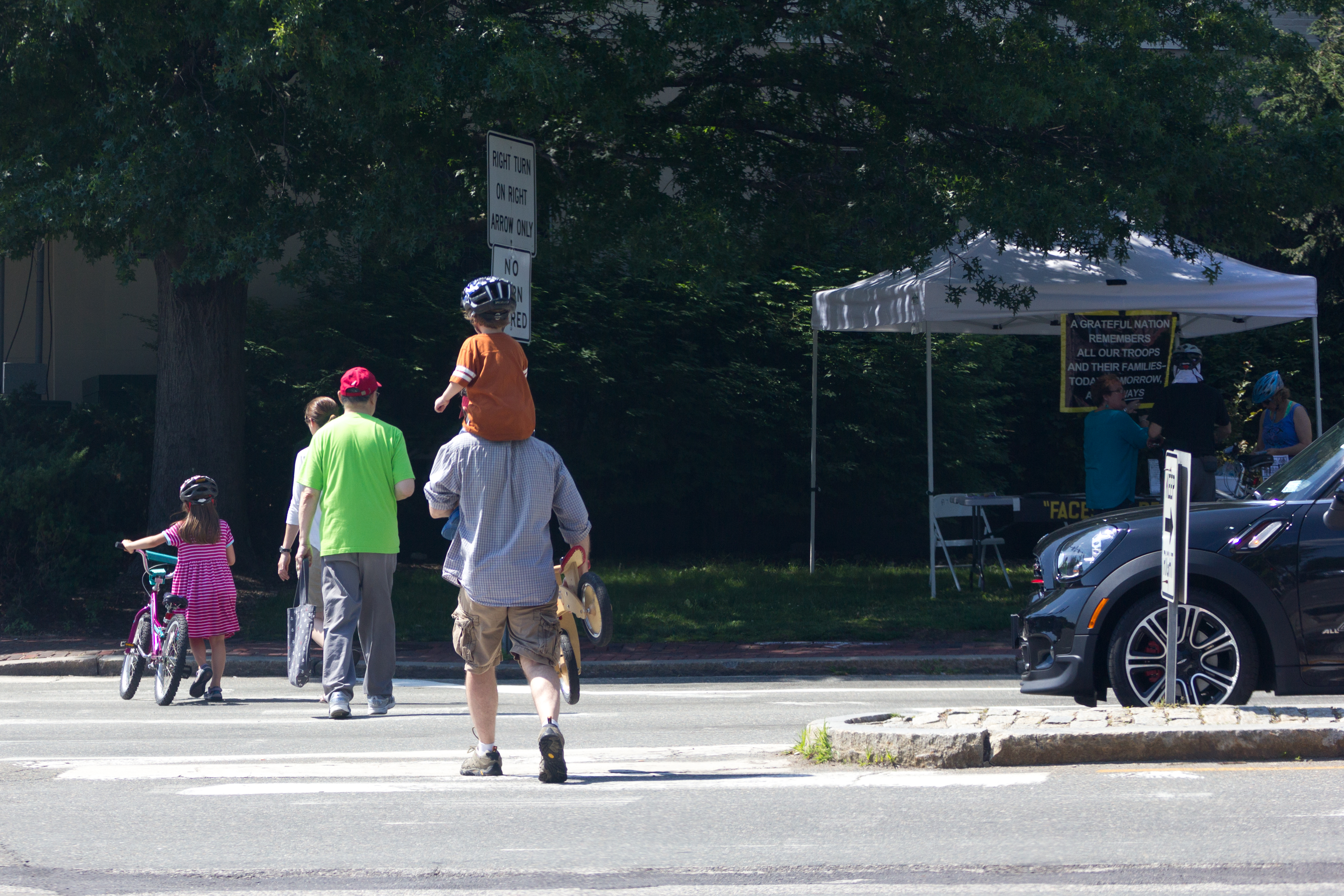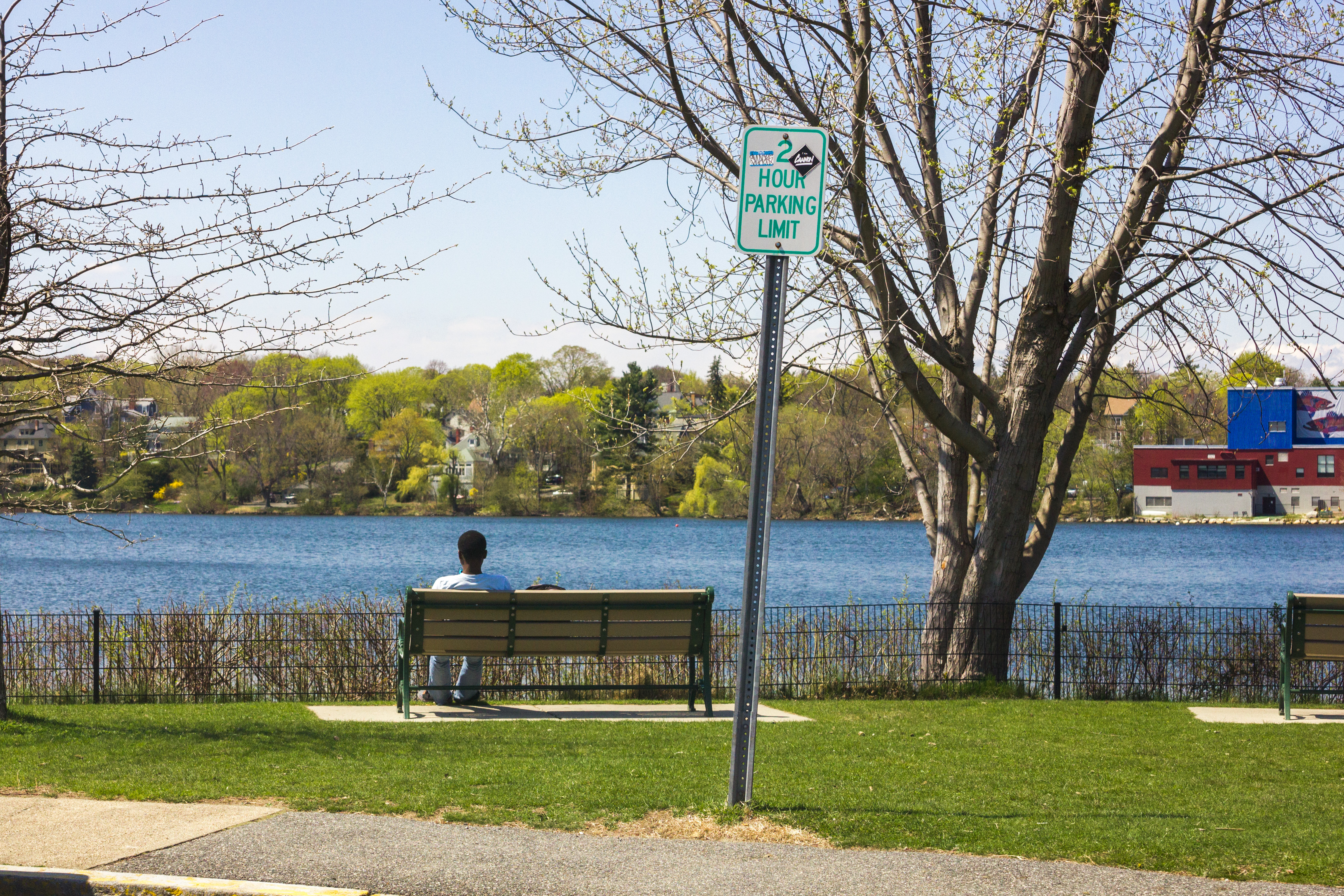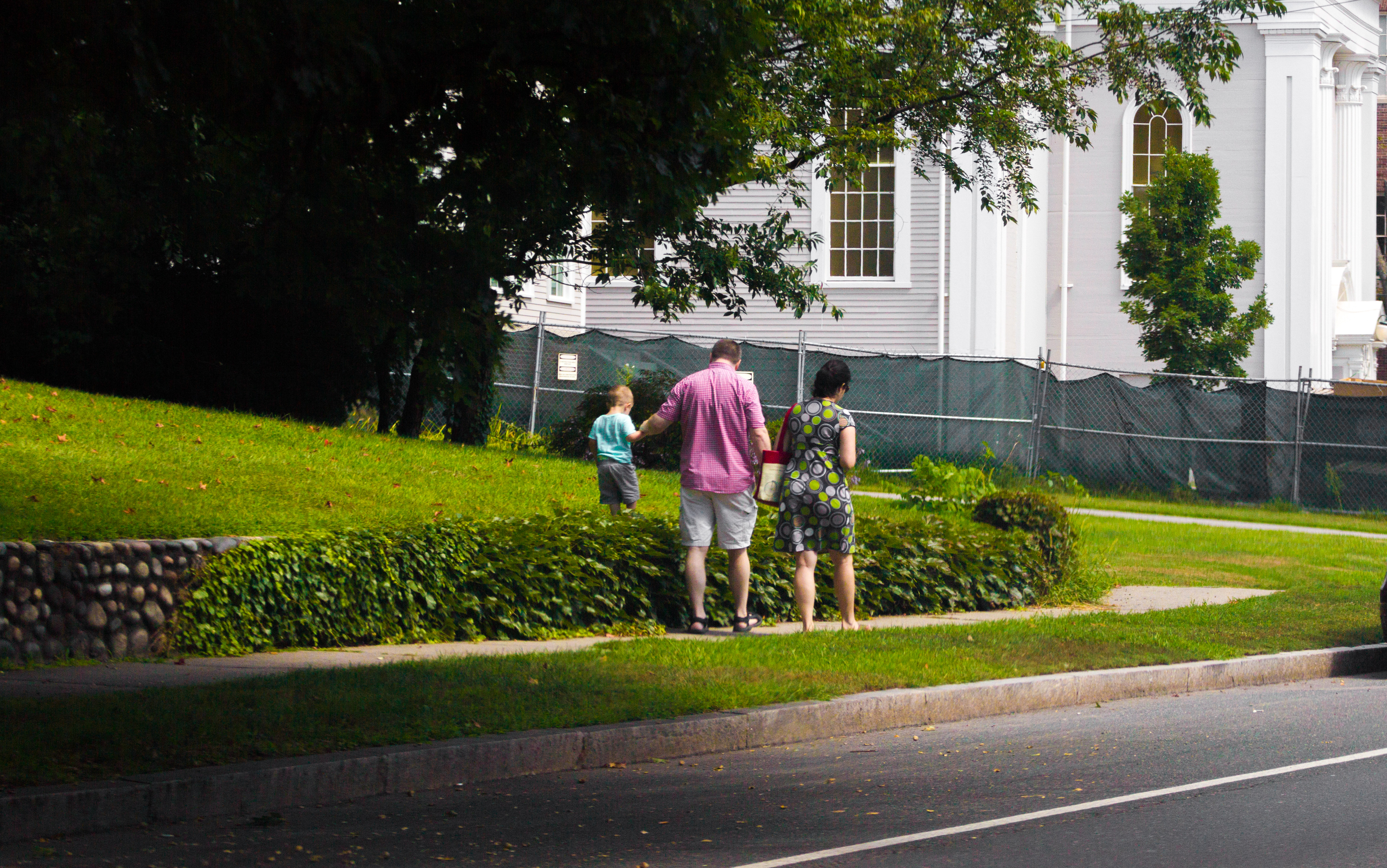 A mother and her children sit in the Town Hall garden opposite Cyrus E. Dallin’s “Menotomy Indian Hunter.” April 4, 2012.
