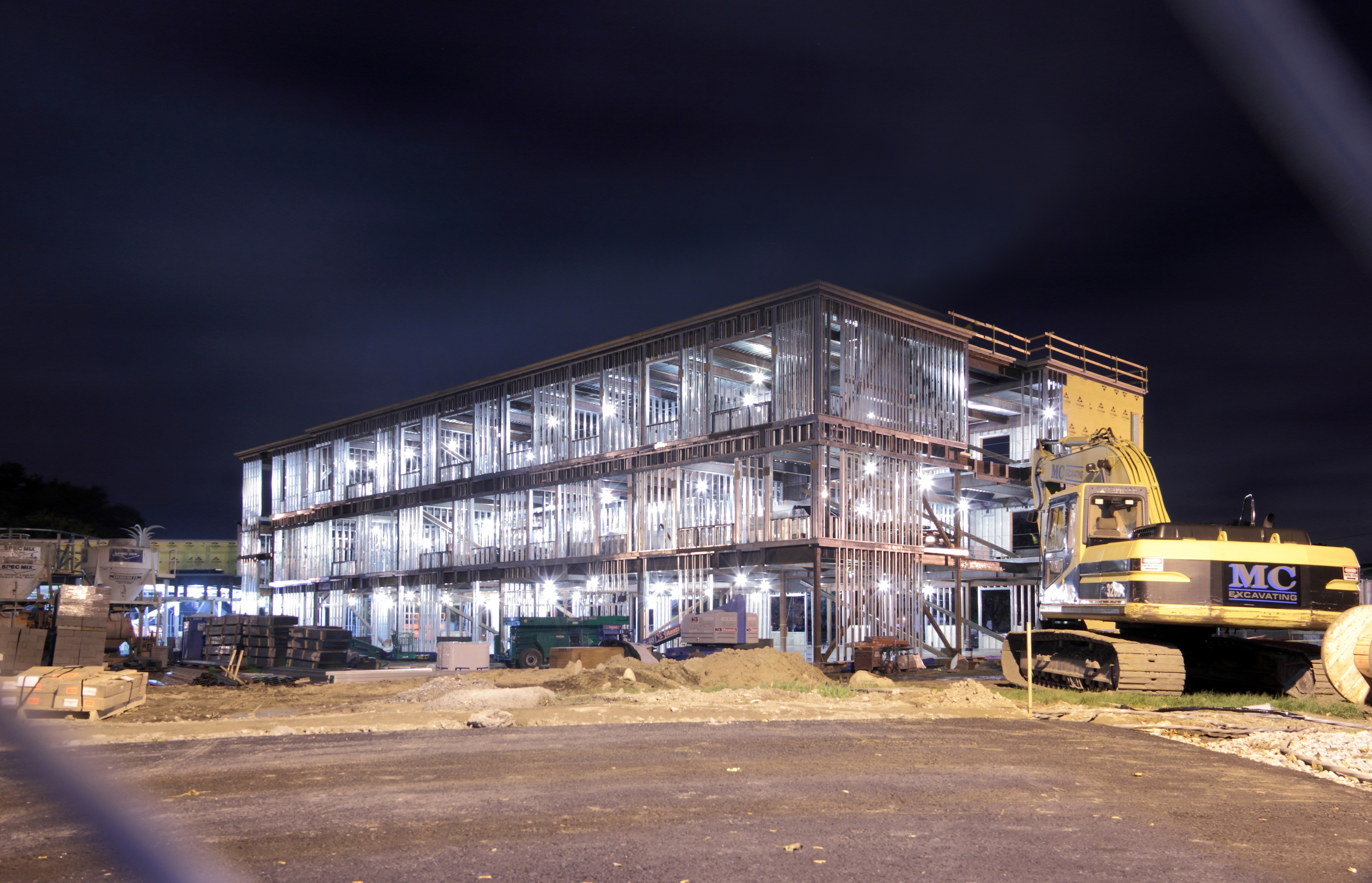 A light illuminates the far corner of the Arlington High School campus. December 17, 2011.