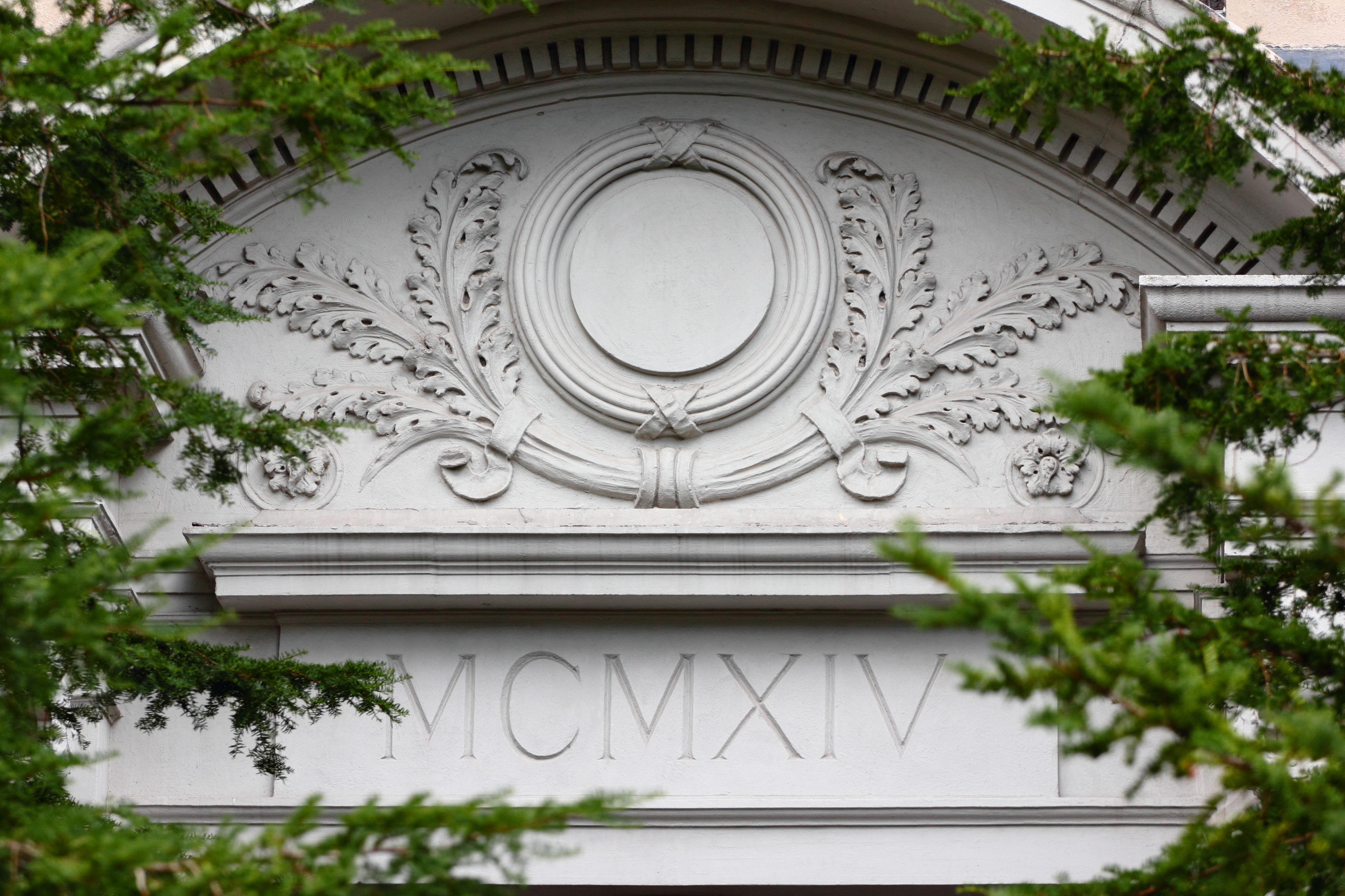 A decorative cement feature outside of the Foster Street entrance to the former Gibbs Jr. High School. March 8, 2012.