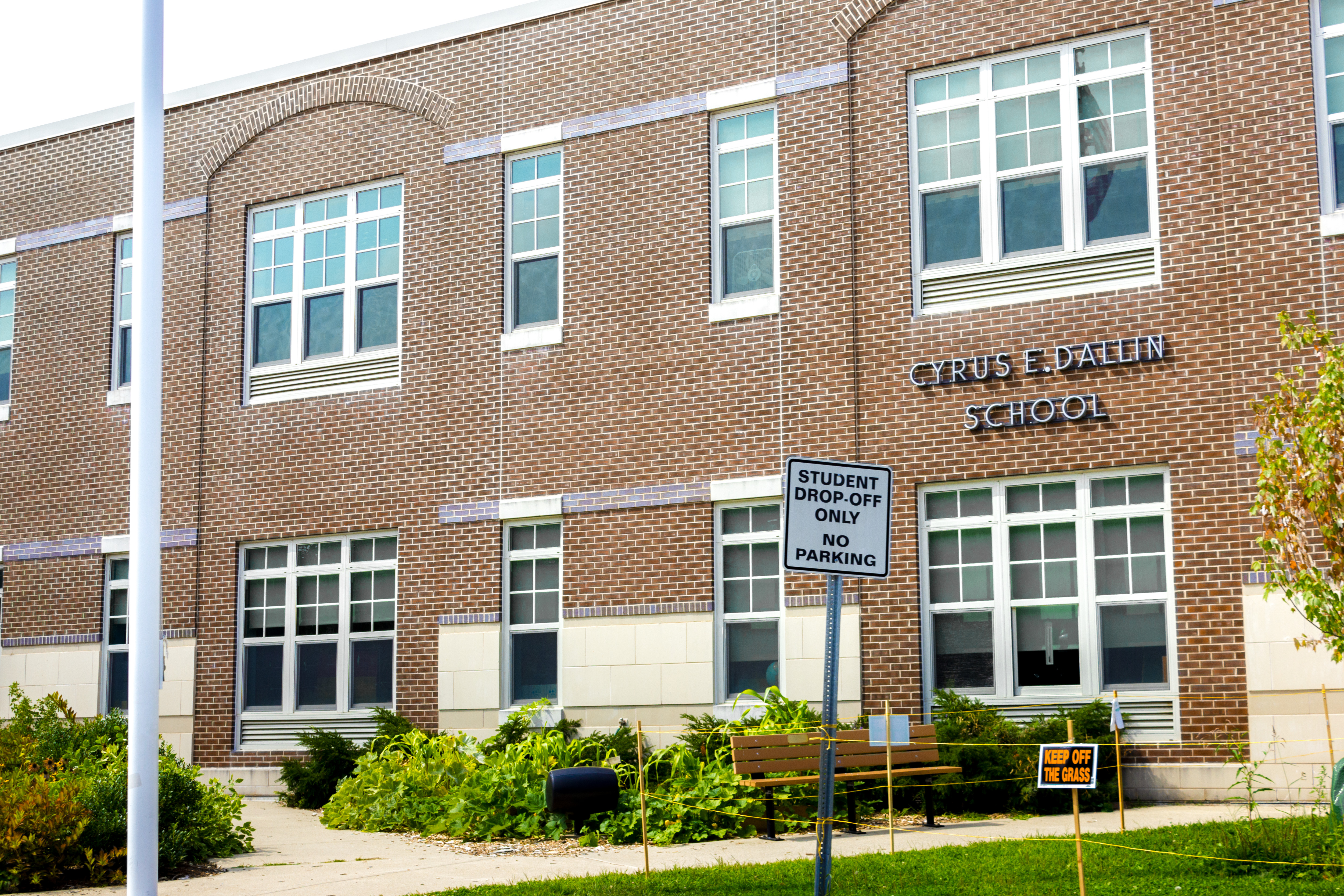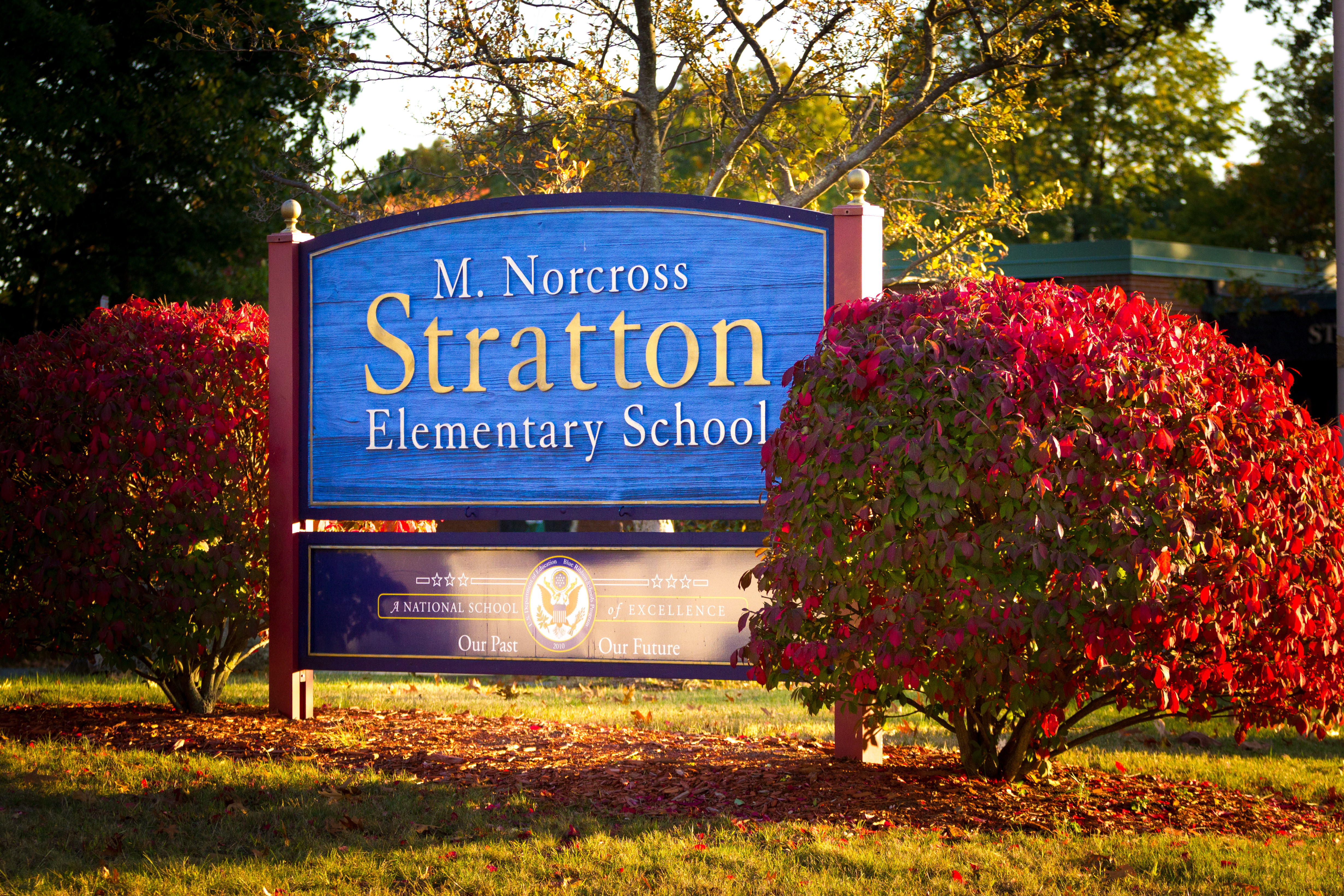 A weather-worn sign on the side of the Stratton Elementary school. June 24, 2010.