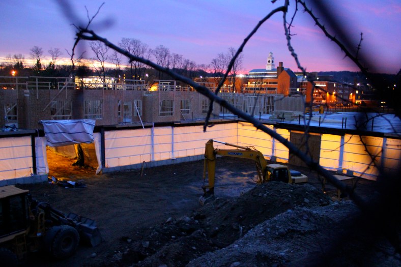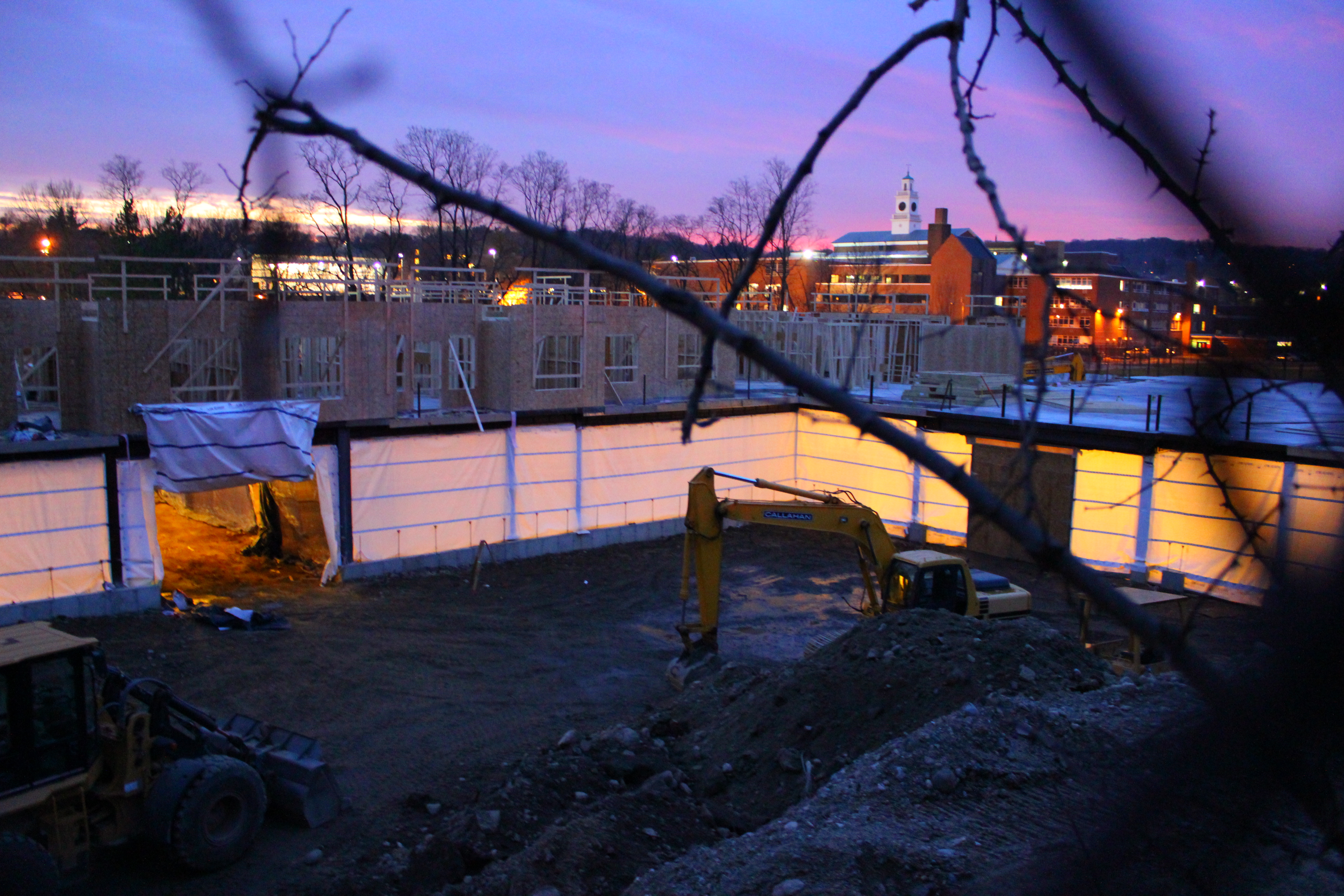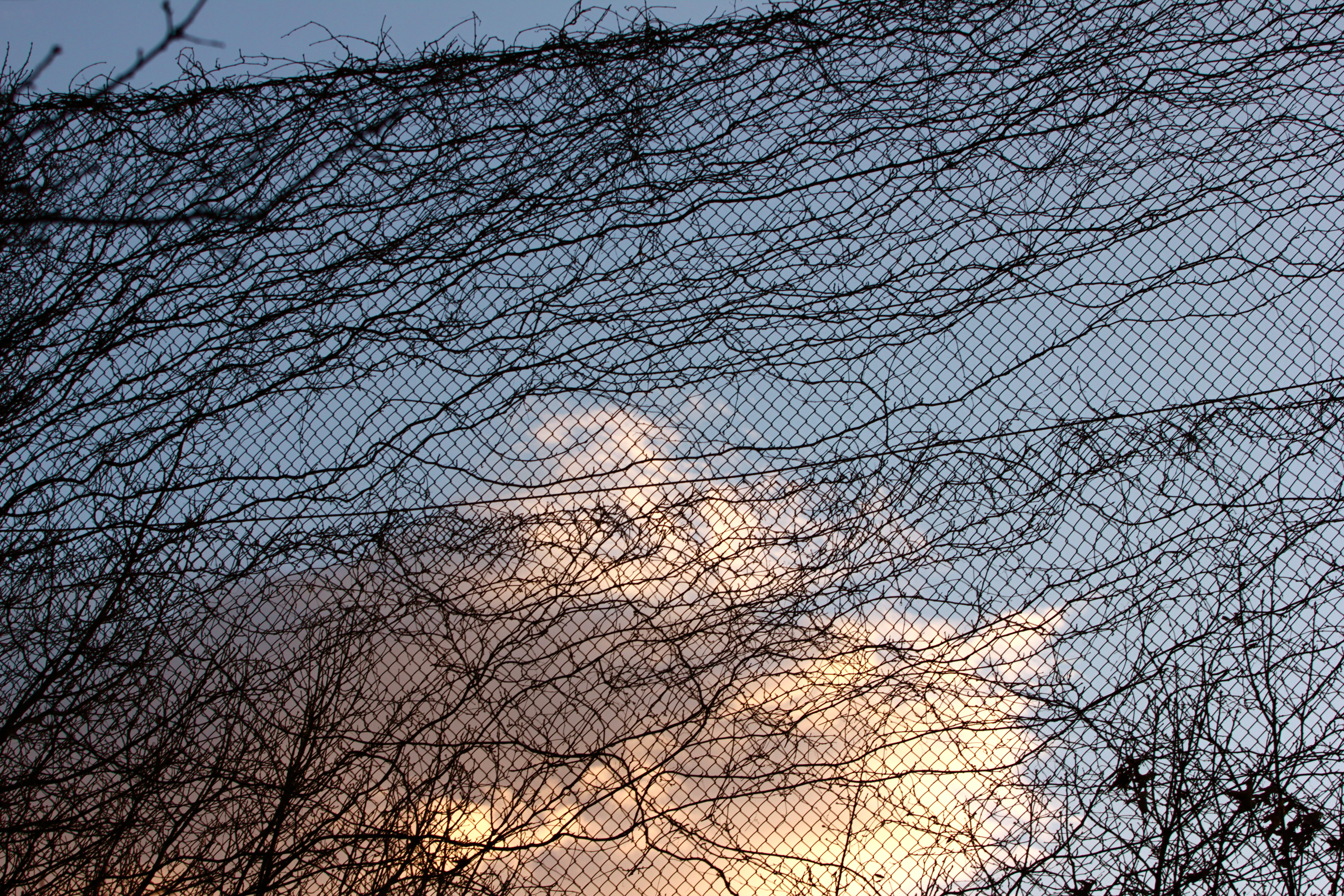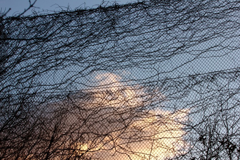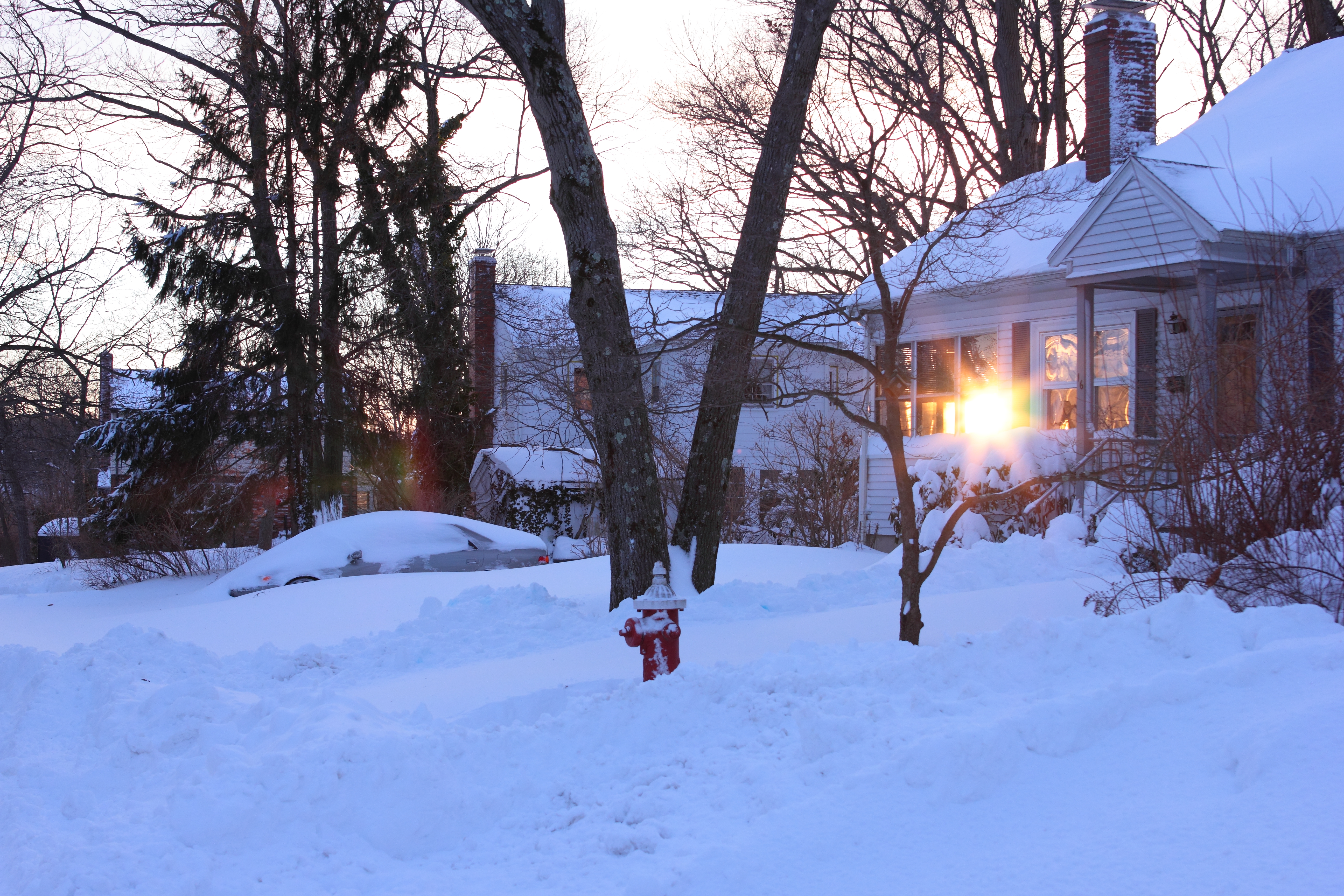 A cloud illuminated by the setting sun as seen from Summer Street. February 1, 2012.