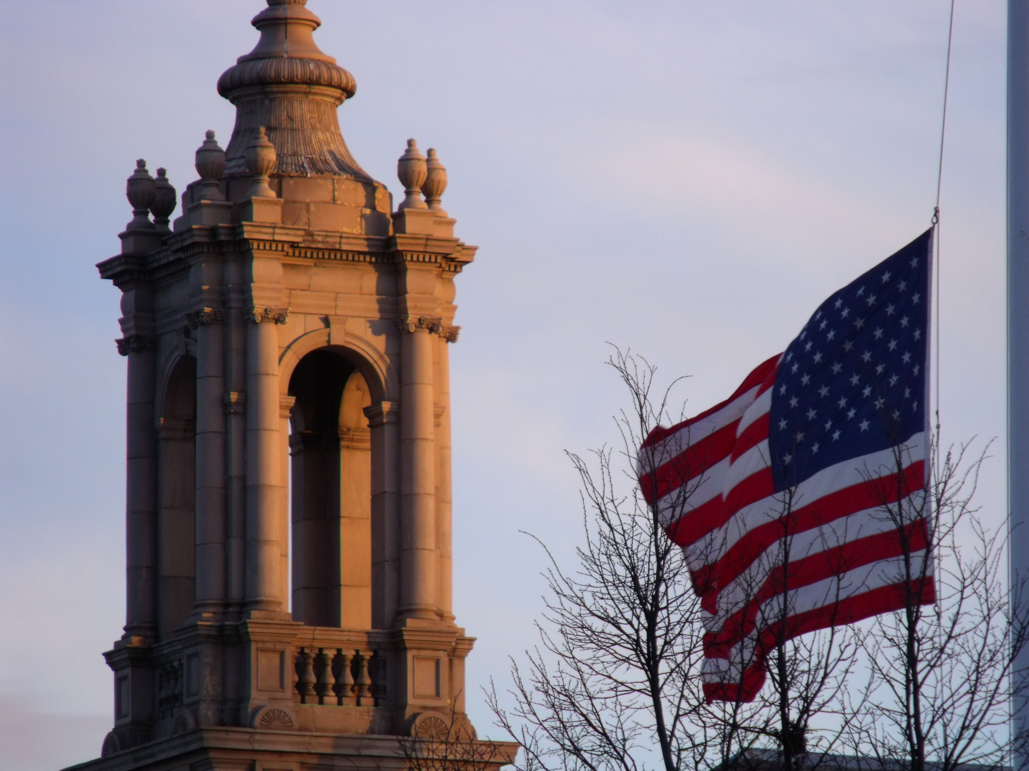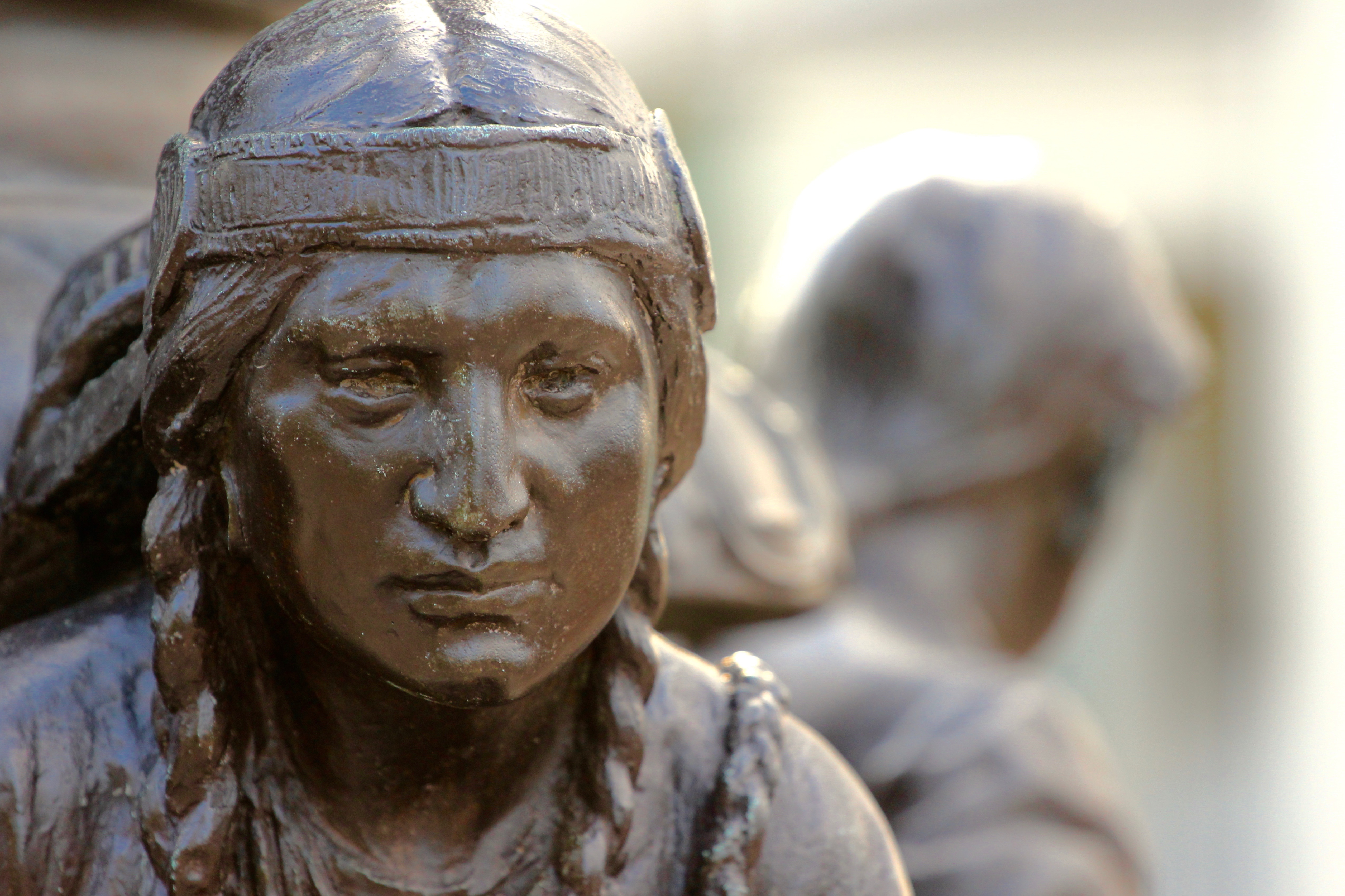 A nighttime detail of Cyrus E. Dallin’s Menotomy Indian Hunter in the Town Hall garden. February 21, 2012.