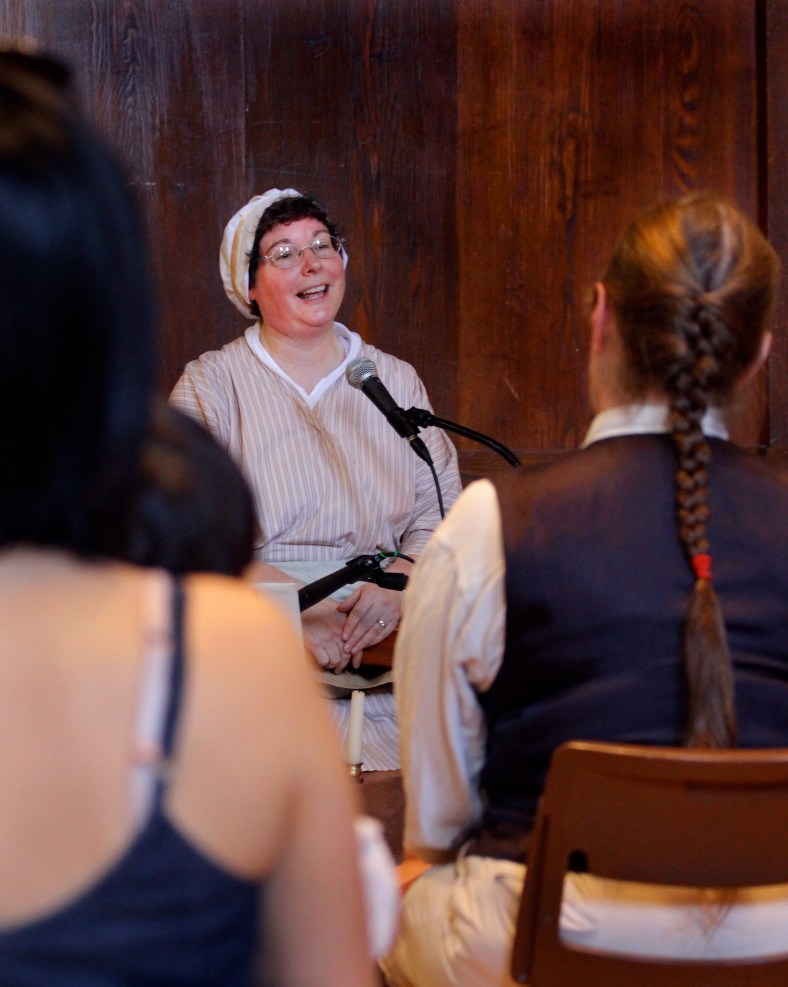 Town Moderator John Leone and Town Clerk Stephanie Lucarelli tally the results of a roll call vote during a short break in a special town meeting called to address, among other things, the possibility of overturning the seasonal ban on gas-powered leaf blowers. The result of the roll call, 110-95 in the negative, essentially left the existing restrictions on leaf blowers in place.