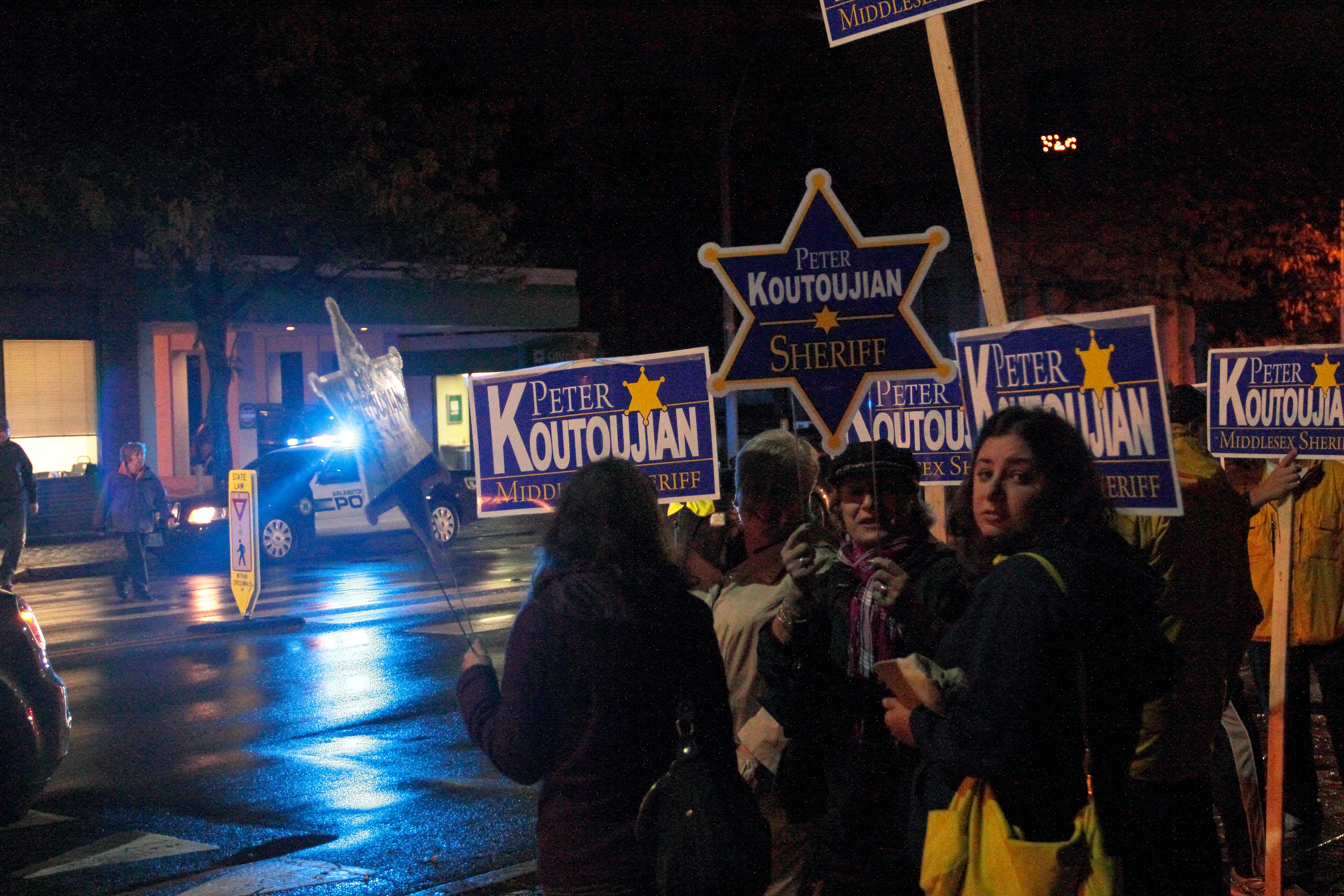 Signs welcoming Dawes and Revere to the village of Menotomy. April 16, 2012.