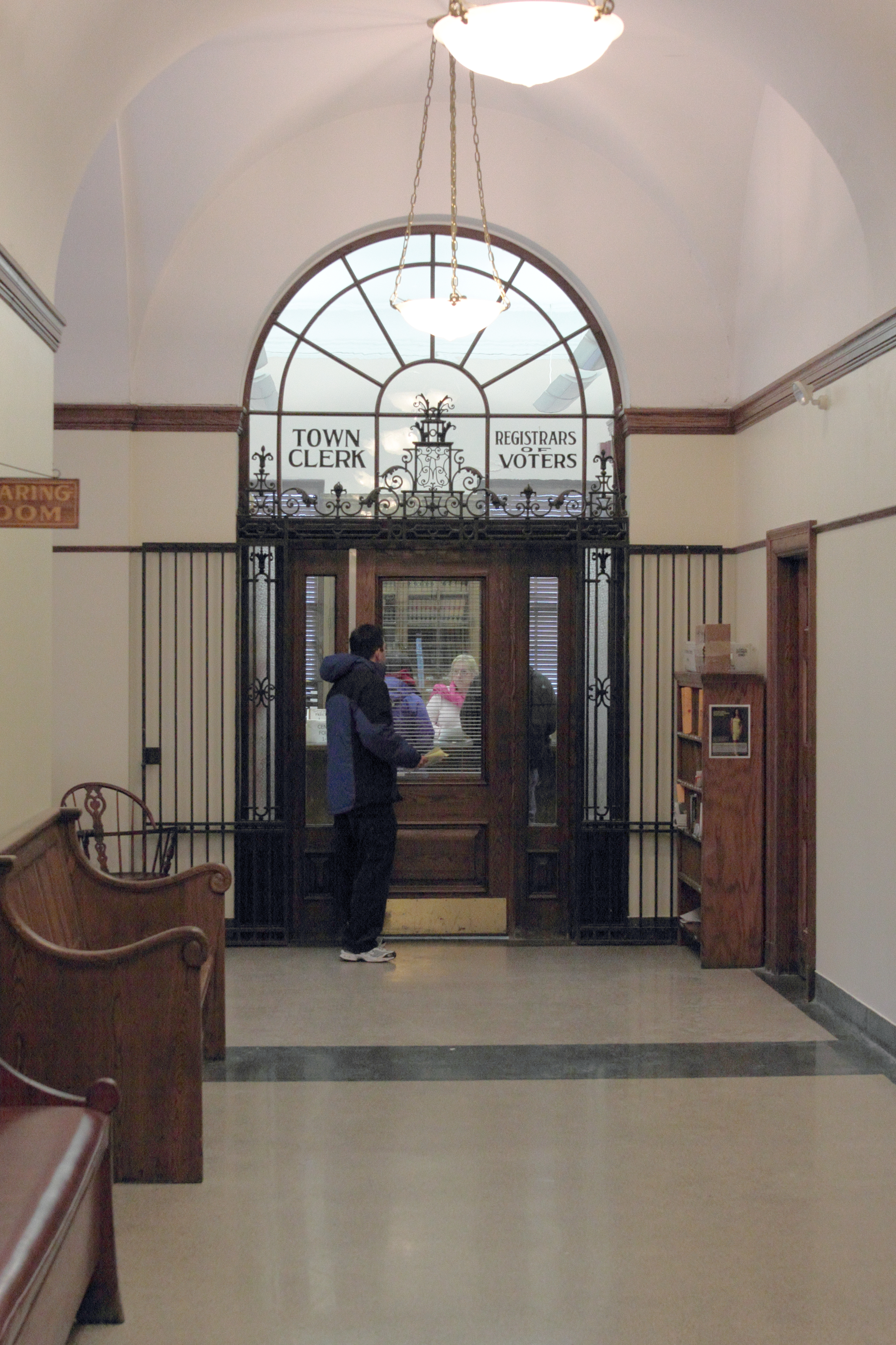 The doorknob and keyhole on an interior door of Town Hall. April 16, 2012.